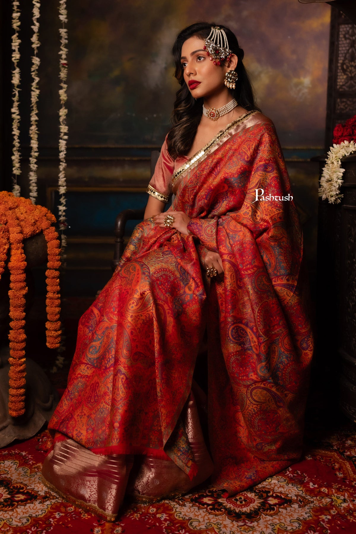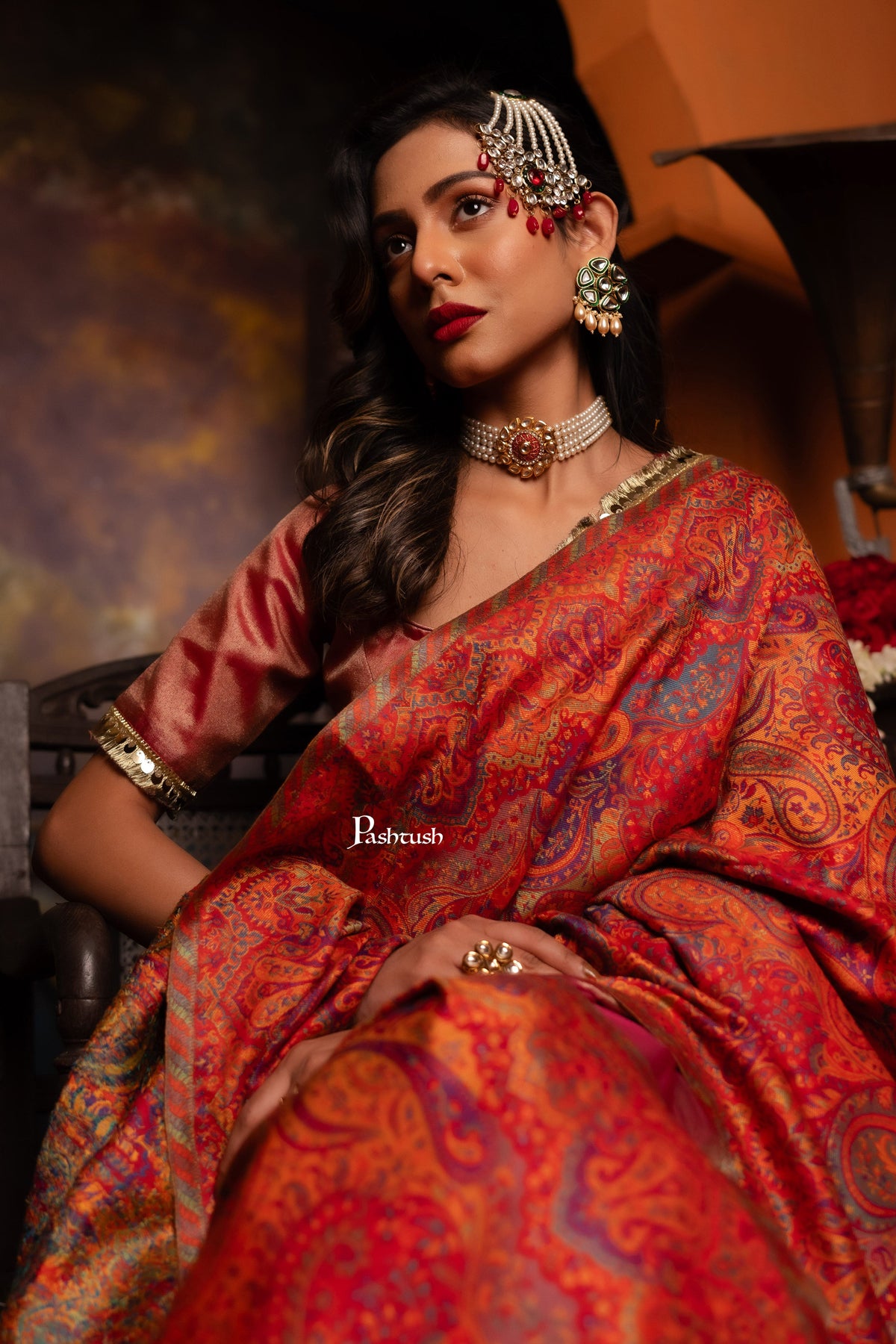 Pashtush Womens Faux Pashmina Shawl, Pailsey Weave Design, Red