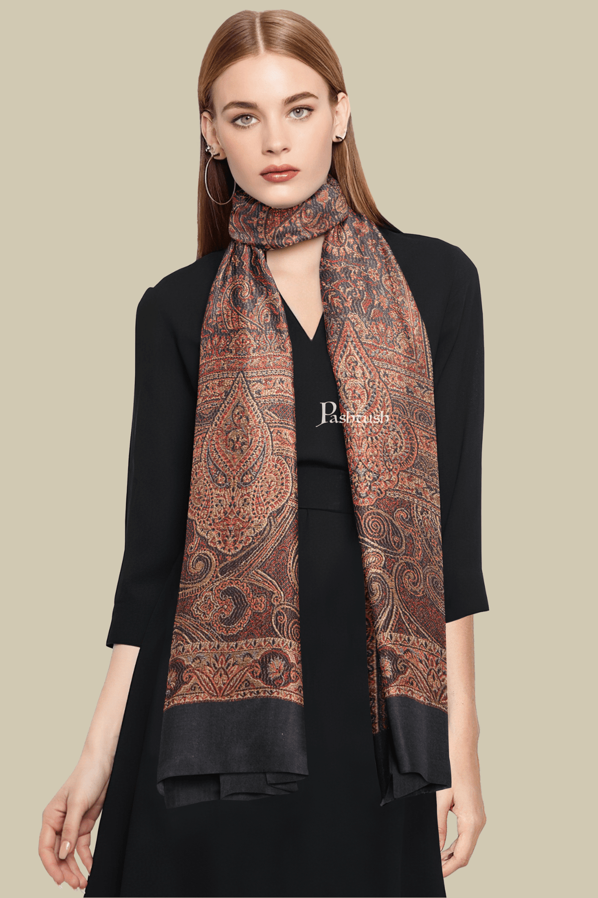 Pashtush Womens Faux Pashmina Stole, Design, Black
