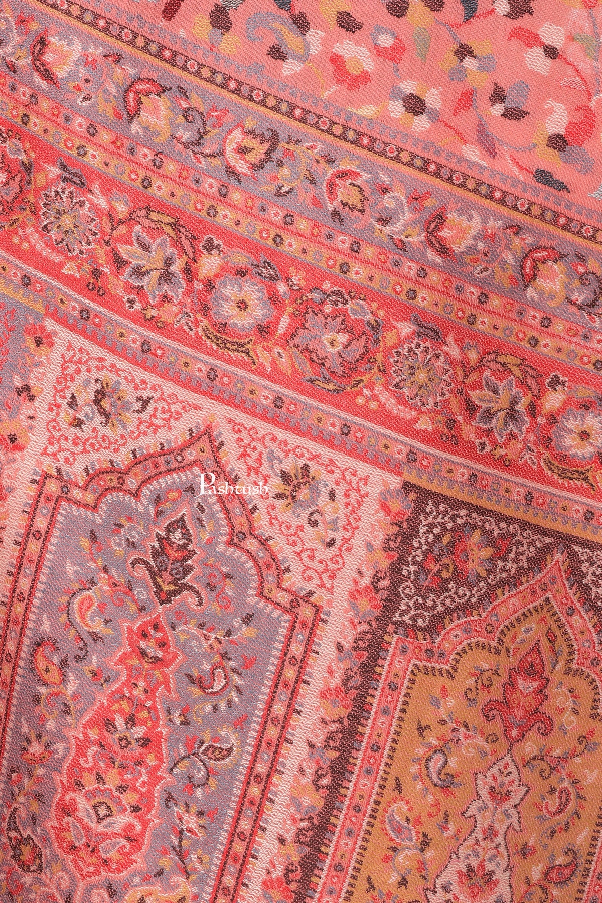 Pashtush Womens Faux Pashmina Stole, Ethnic Weave Design, Peach