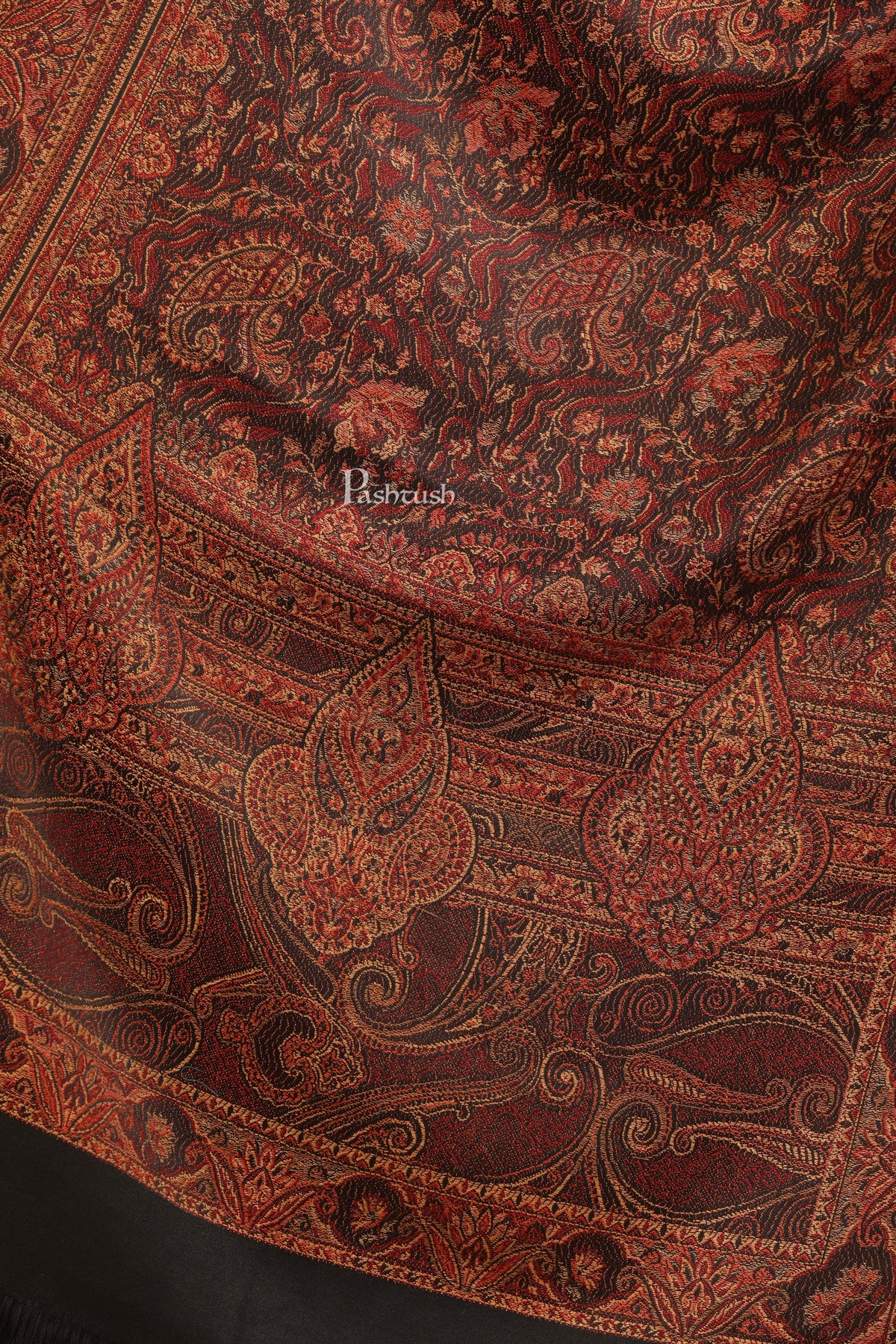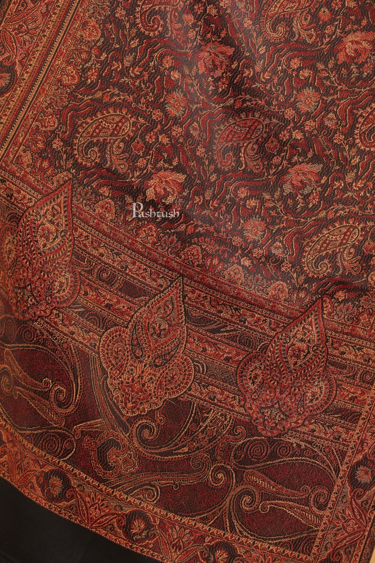 Pashtush Womens Faux Pashmina Stole, Jamawar Weave Design, Black