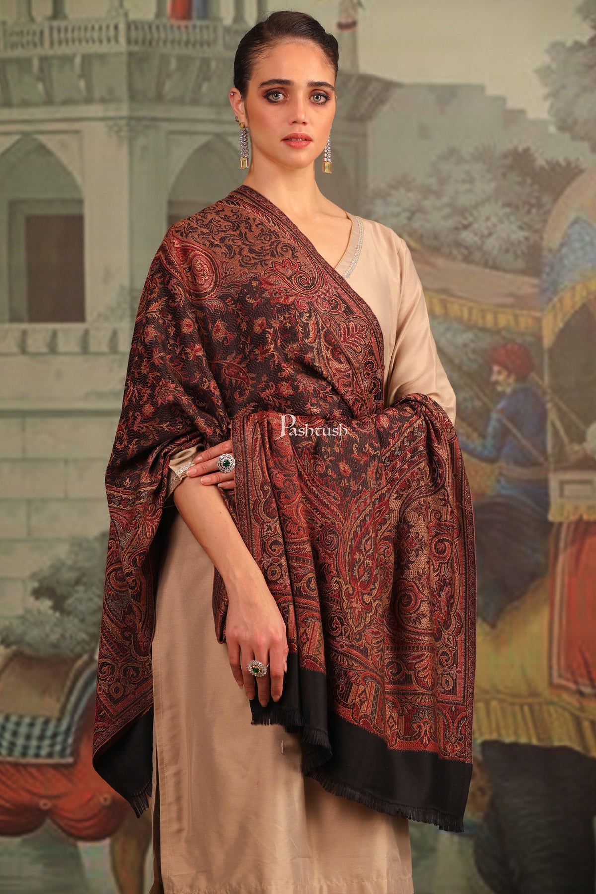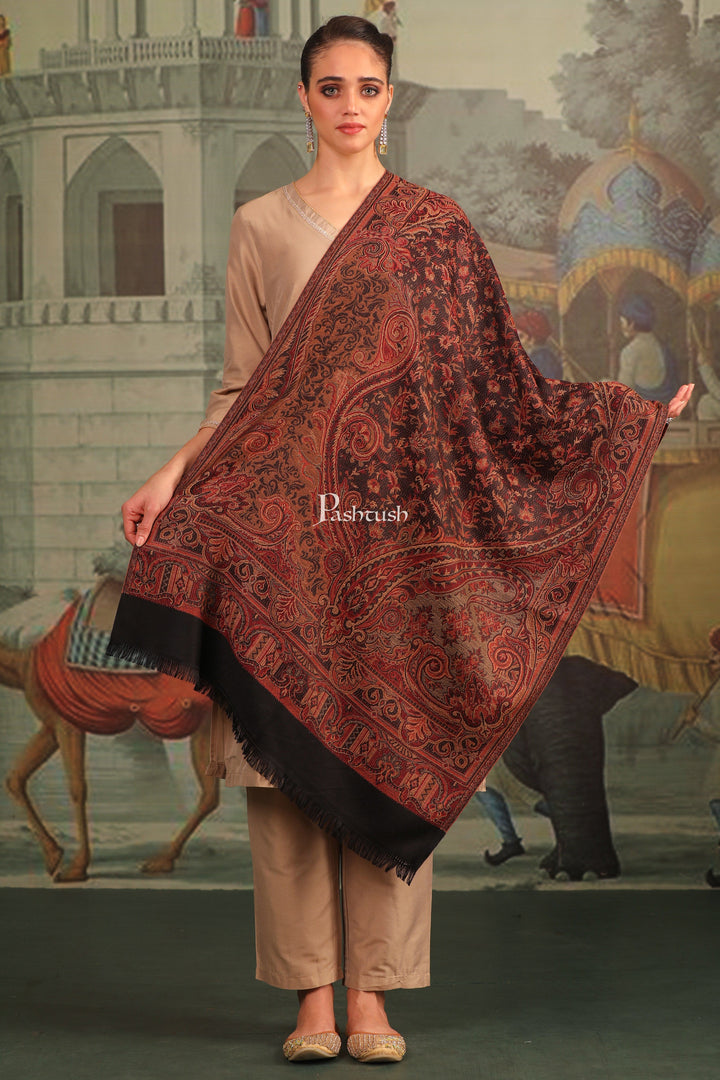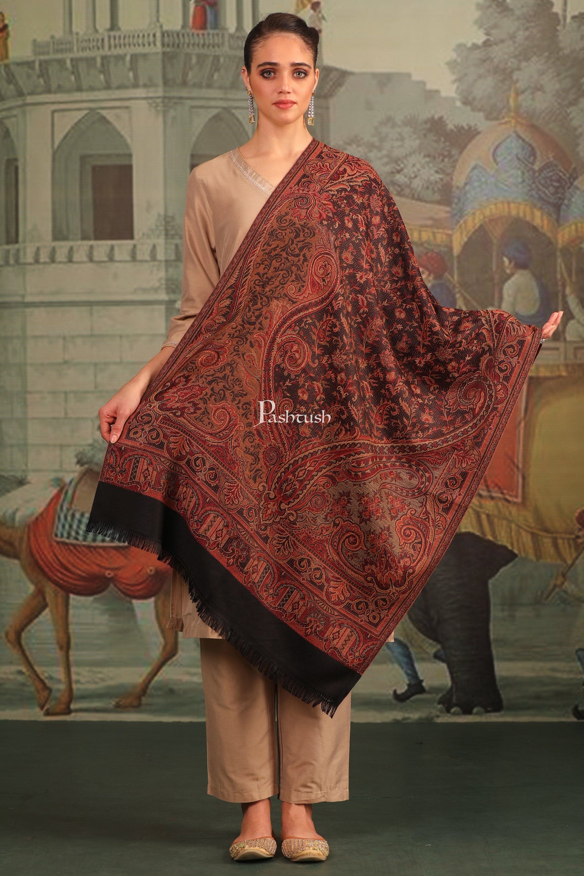Pashtush Womens Faux Pashmina Stole, Paisley Design, Black