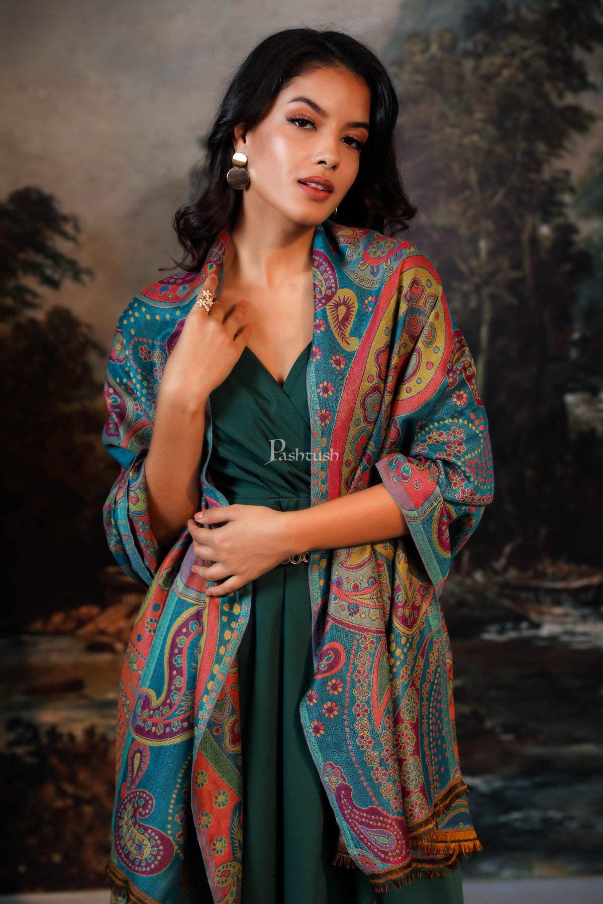 Pashtush womens Faux Pashmina stole, paisley weave design, Multicolour