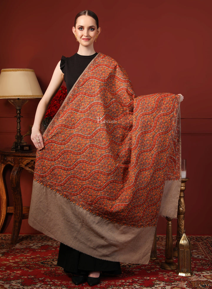 Pashtush India Womens Shawls Pashtush Womens Shawl, Fine Wool, Needlework Jaal, Papier Mache Embroidery, Beige