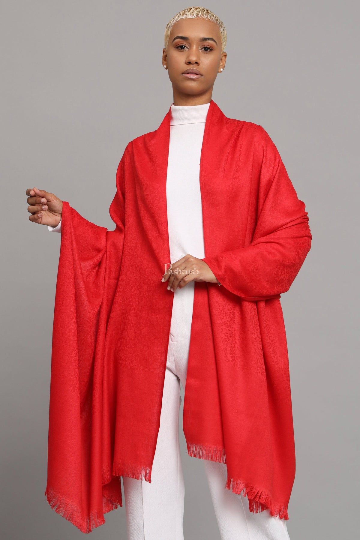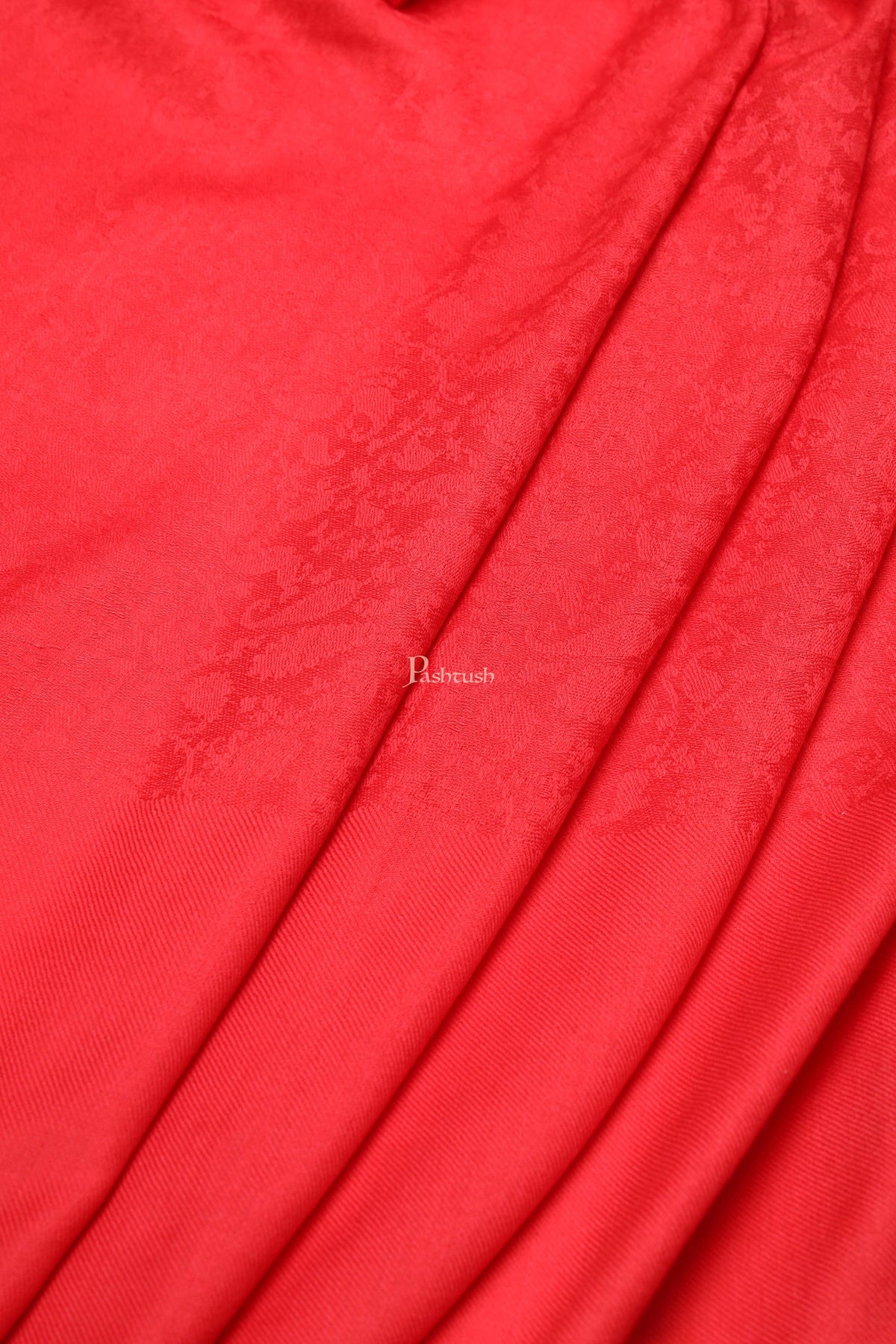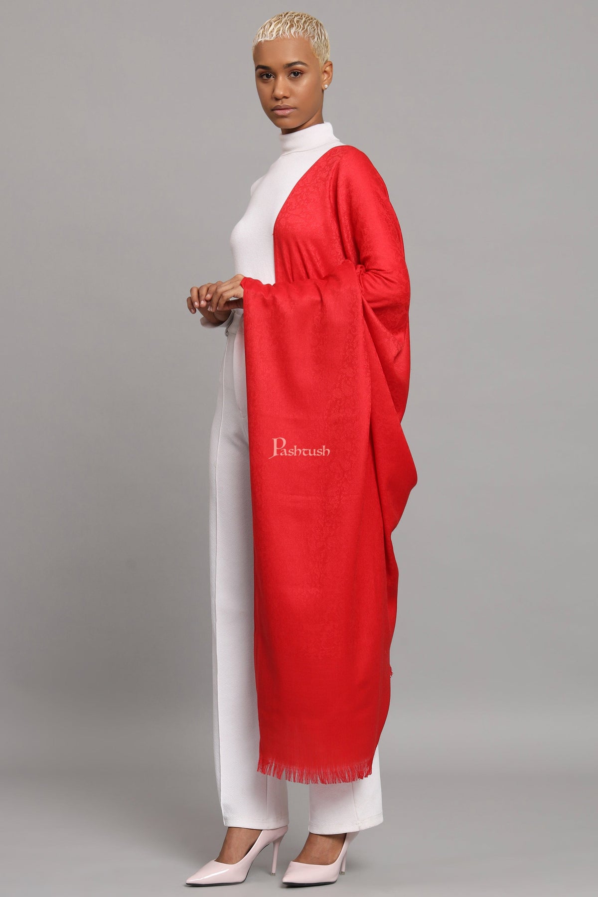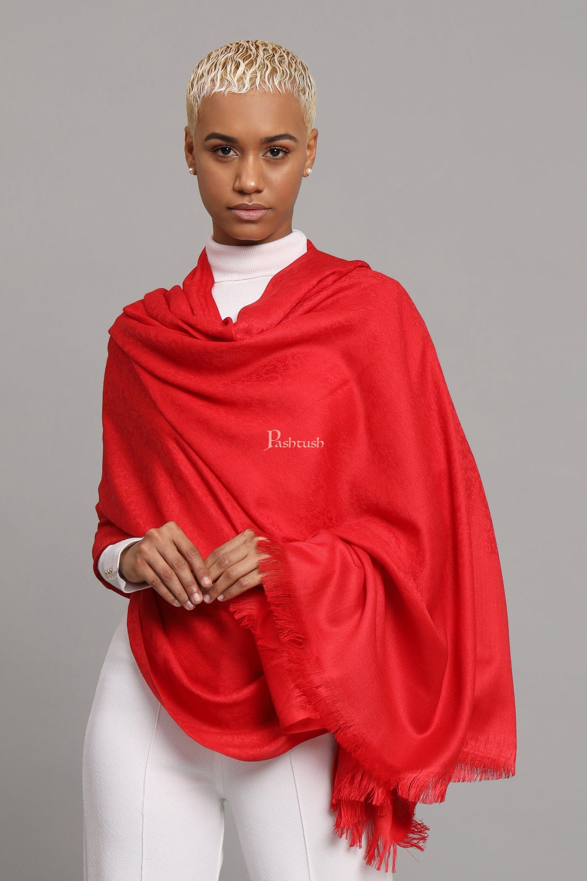 Pashtush Womens Fine Wool Shawl, Self Paisley Woven Design Design, Scarlet Red
