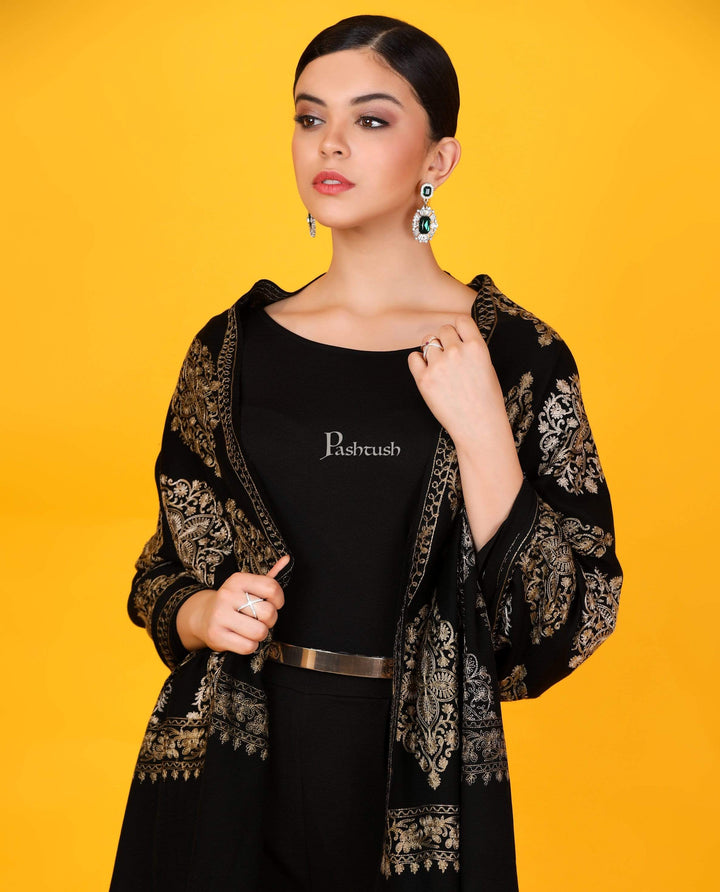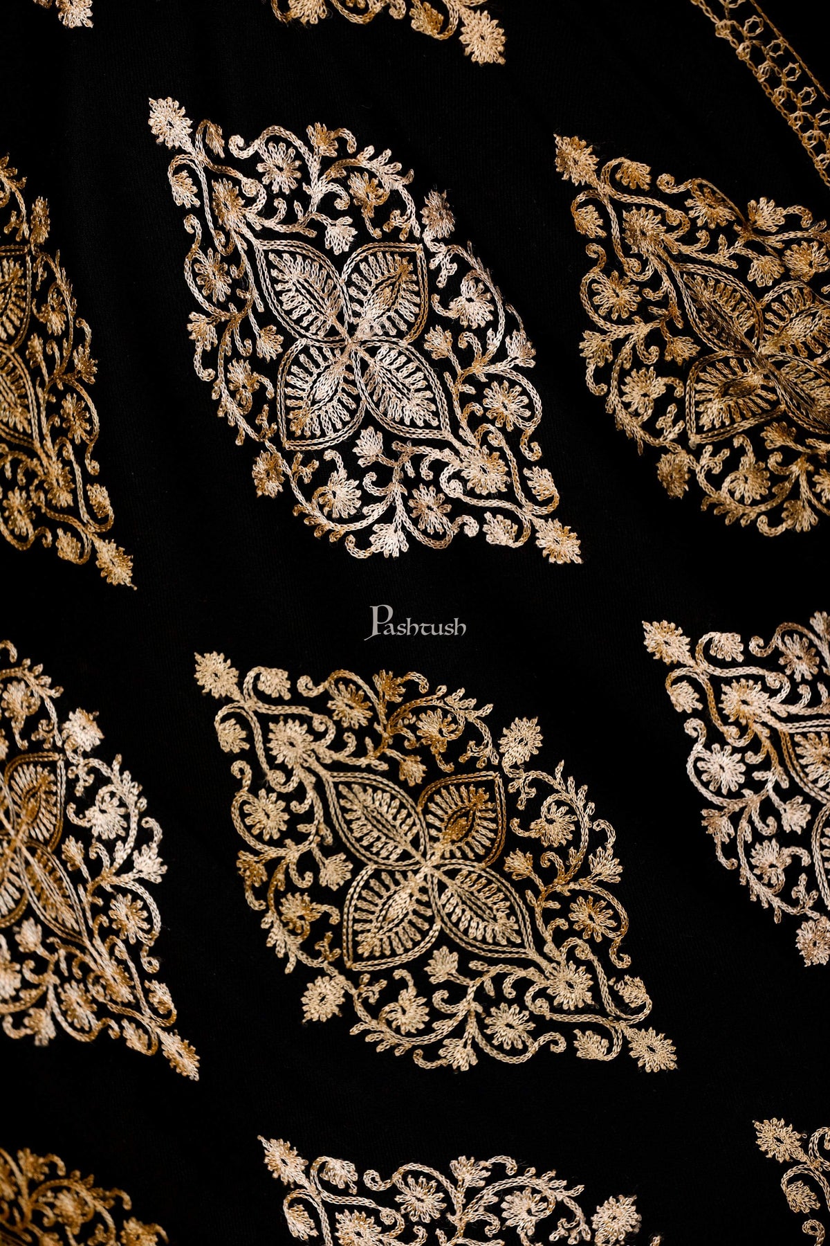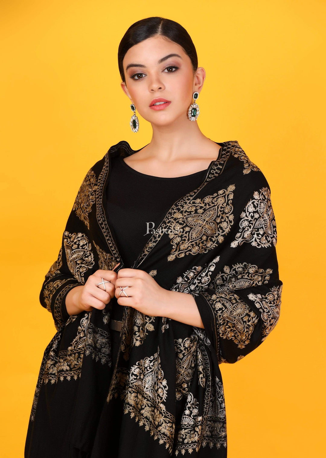 Pashtush Store Stole Pashtush Womens Fine Wool, Silky Nalki Embroidery Needlework Stole, Black