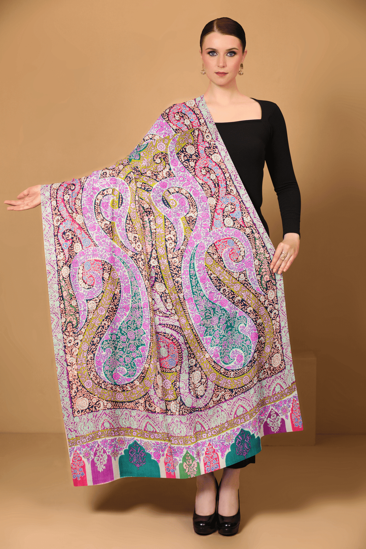 Pashtush Womens, Handmade Pashmina Embroidery Shawl, Gulaabdar Papier Mache Embroidery with Resham Threadwork, Multicoloured