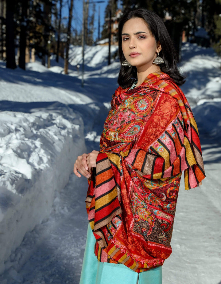Pashtush Shawl Store Stole Pashtush Womens Handworked, Painted Kalamkari Embroidery Shawl