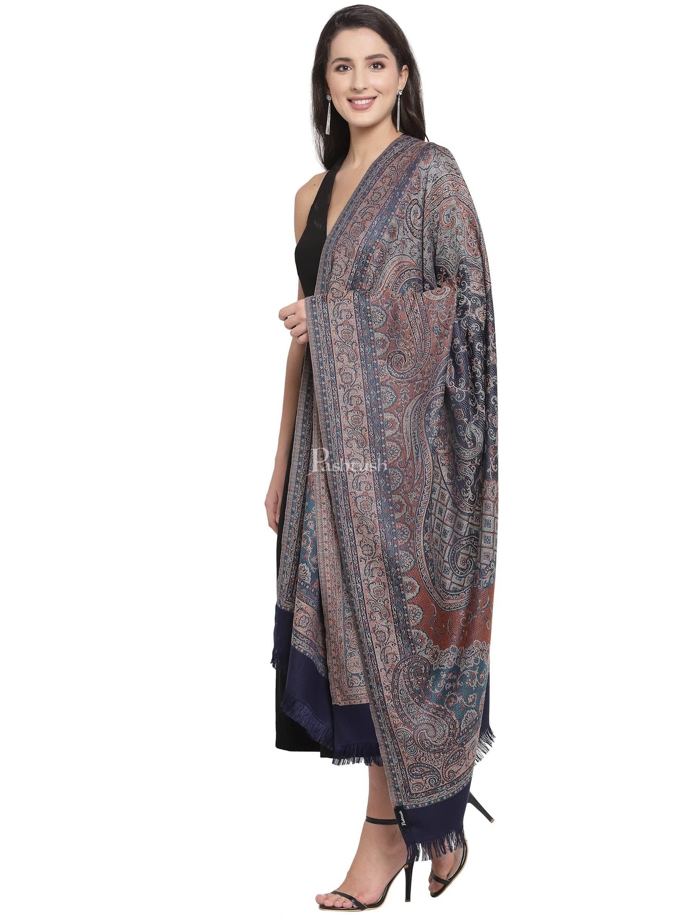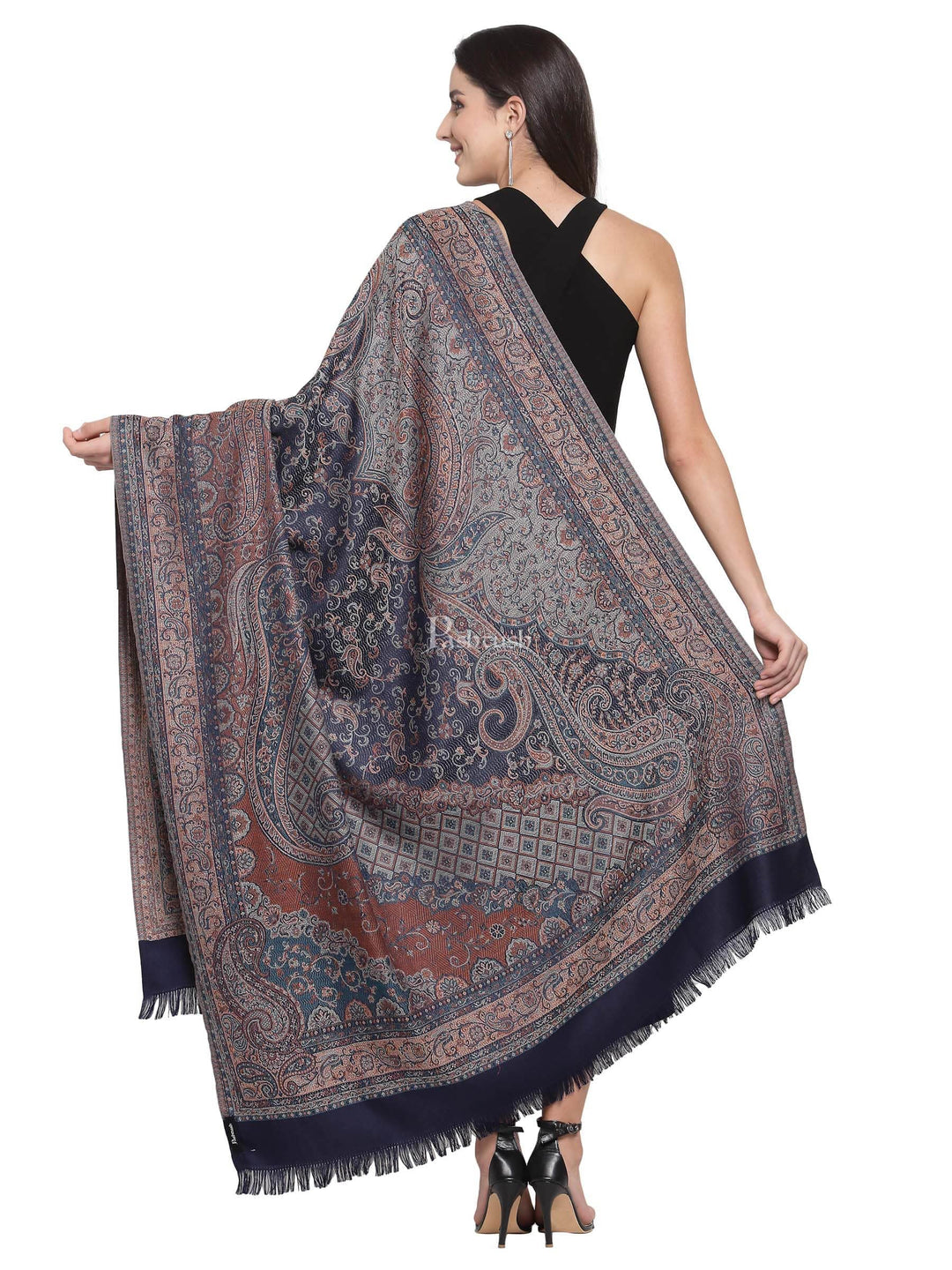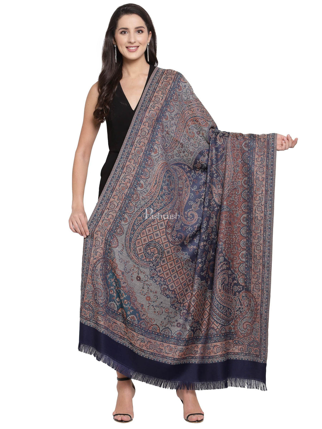Pashtush Women'S Jamawar Shawl, Navy Blue