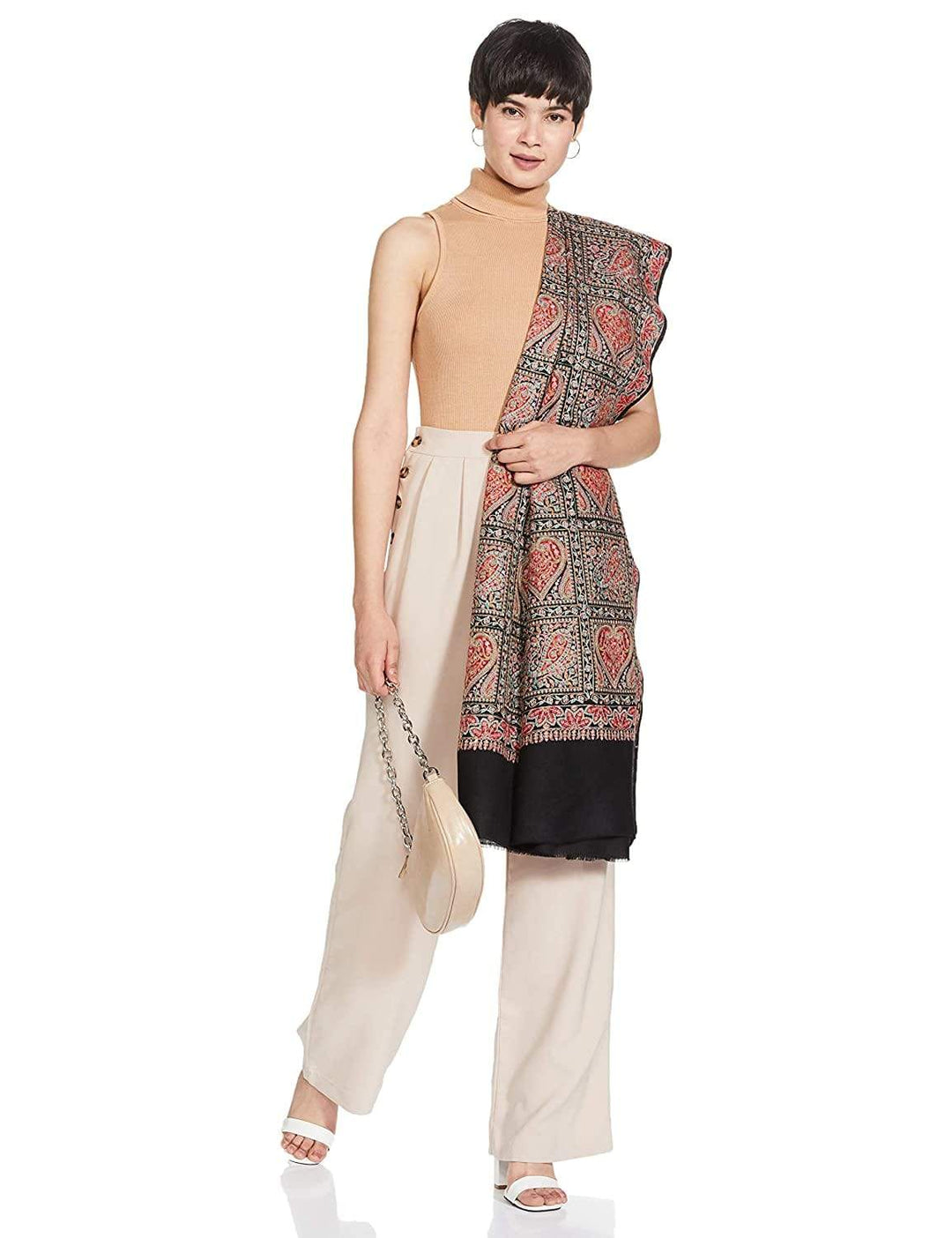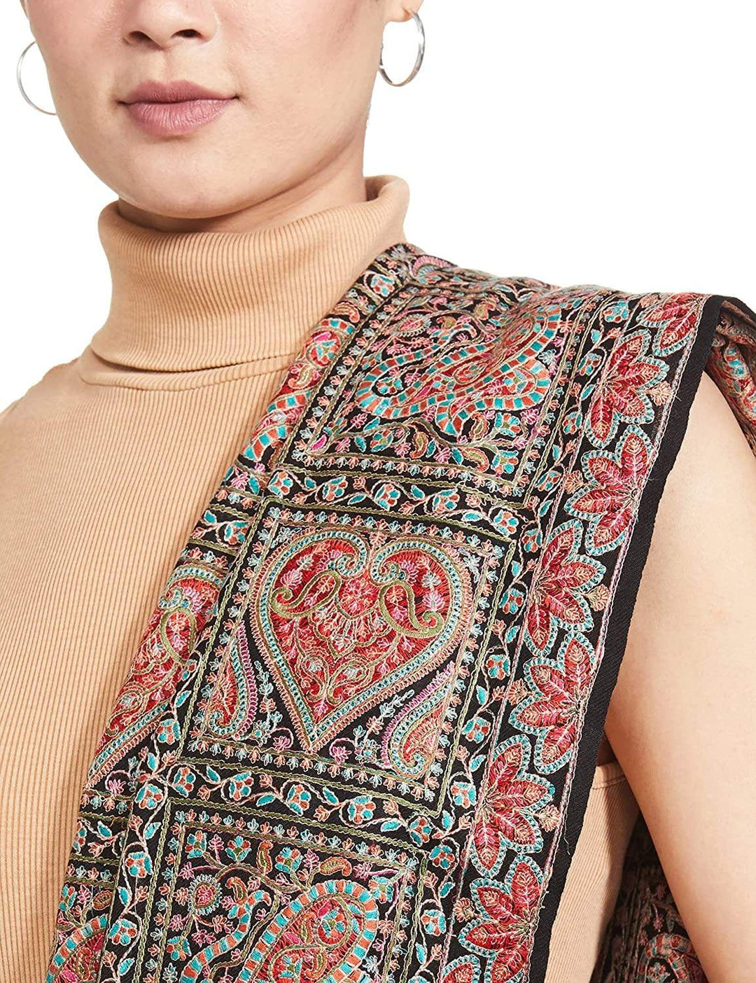 Pashtush Womens Embroidery Shawl, Fineembroidery, Intricate Needlework, Black