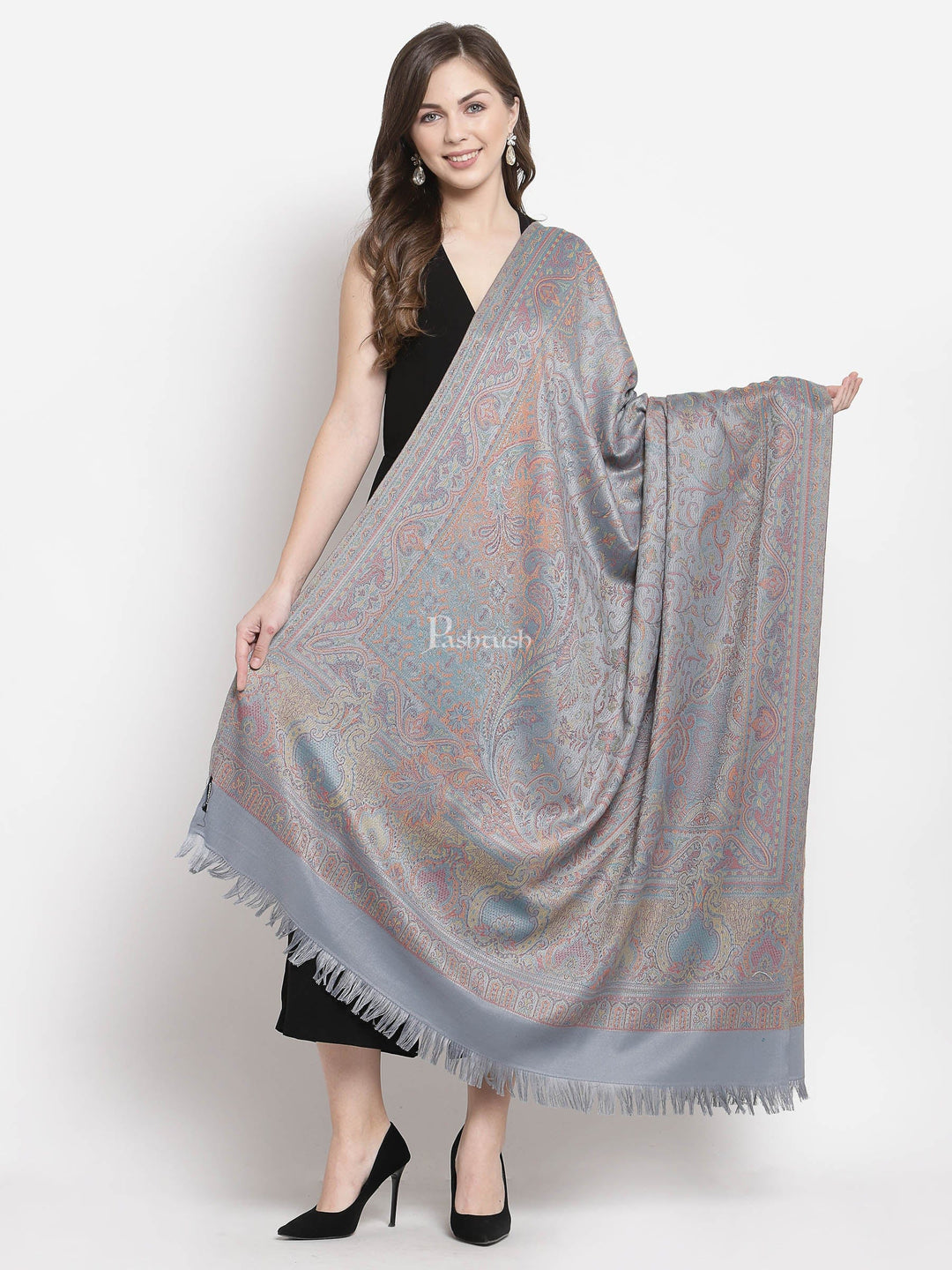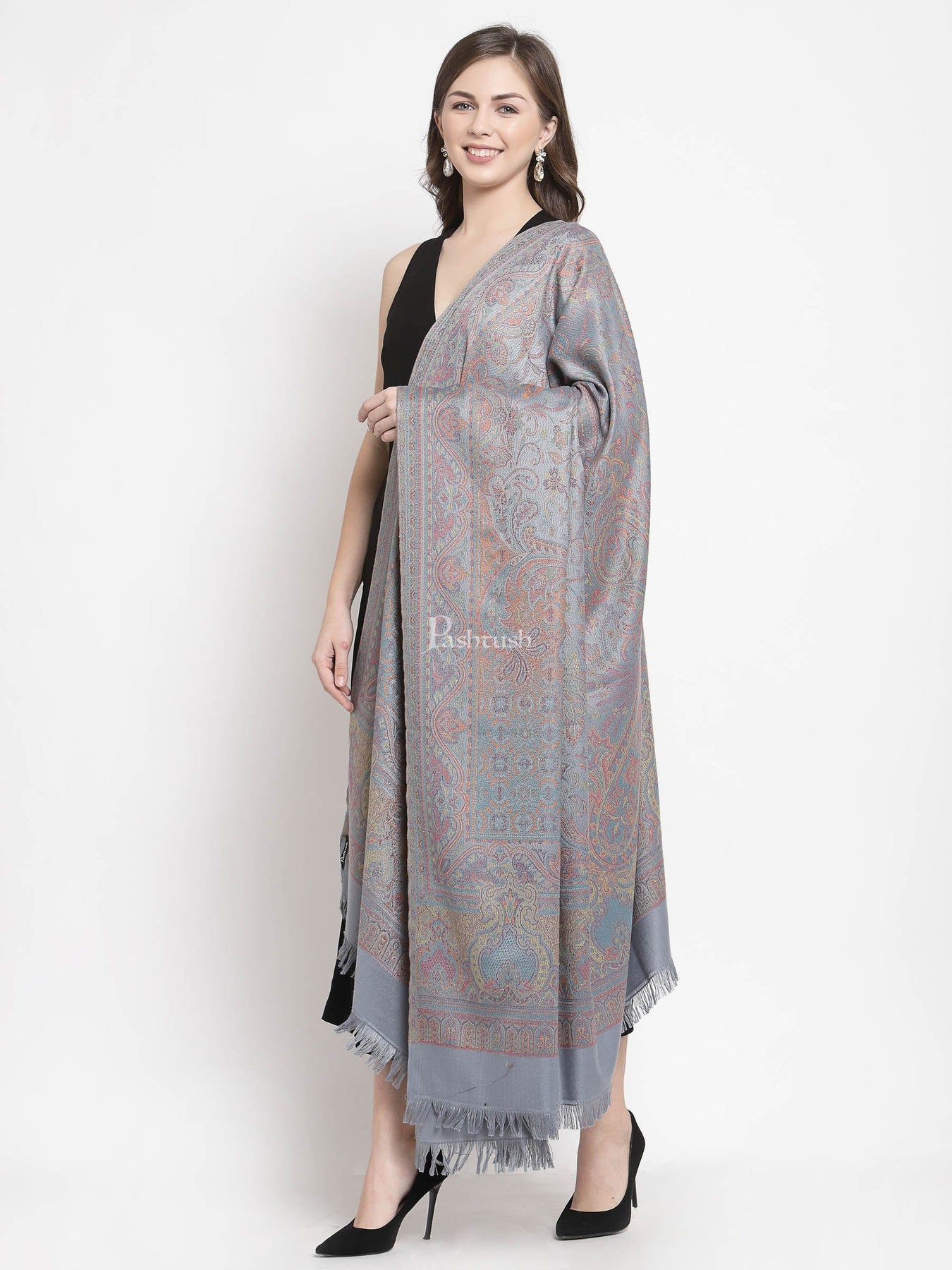 Pashtush Women'S Jamawar Shawl, Slate Grey