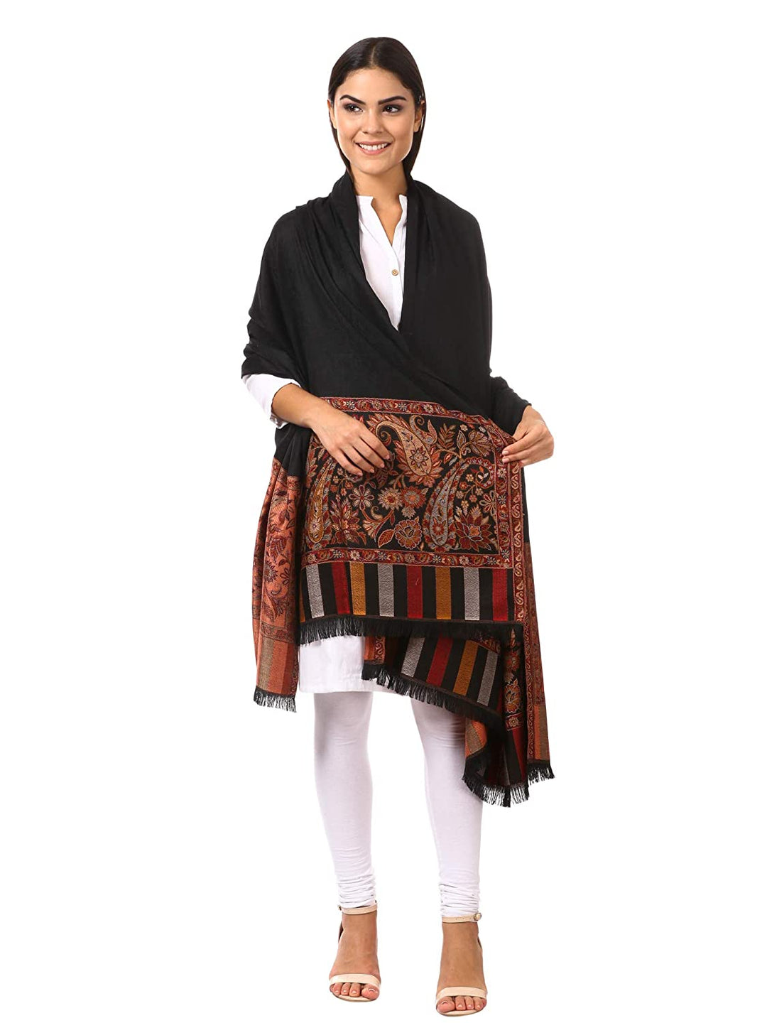 Pashtush Women'S Shawl, Jacquard Palla, Faux Pashmina Design (Black)
