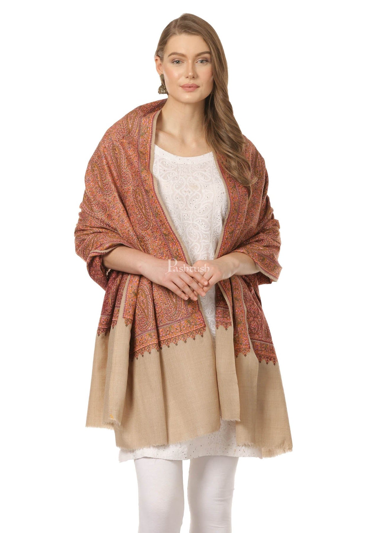 Pashtush Womens Fineembroidery Shawl With Silk Thread Embroidery
