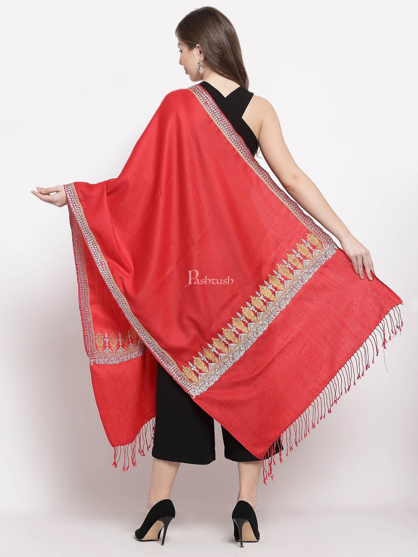 Pashtush Womens Tilla Work Embroidery Stole, Extra Fine Needlework