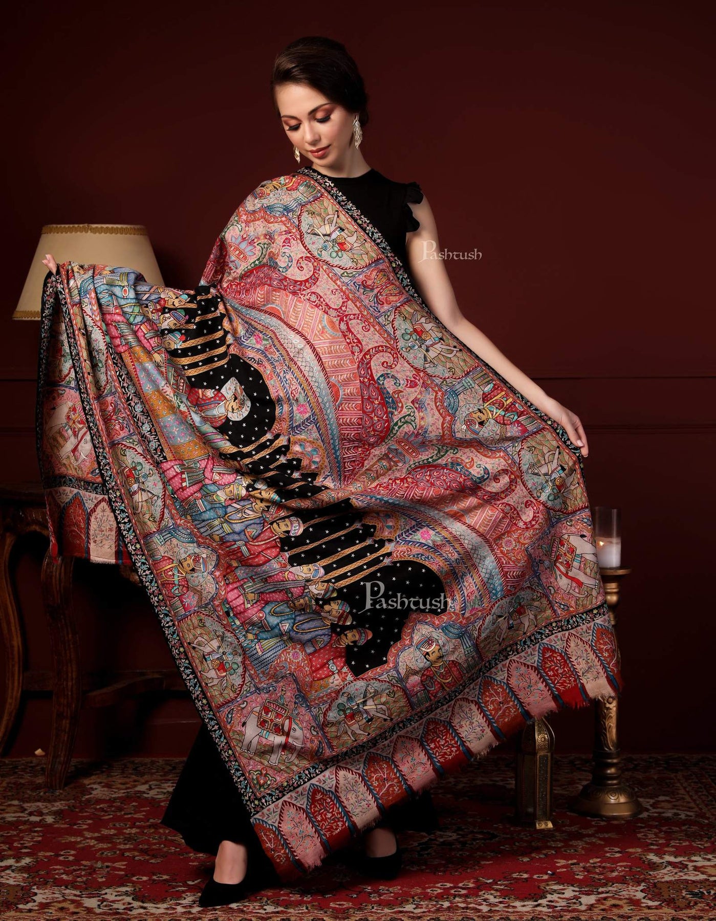 PASHTUSH WOMEN'S Pure Pashmina, 100% HAND EMBROIDERED, Royal DARBAR Shawl