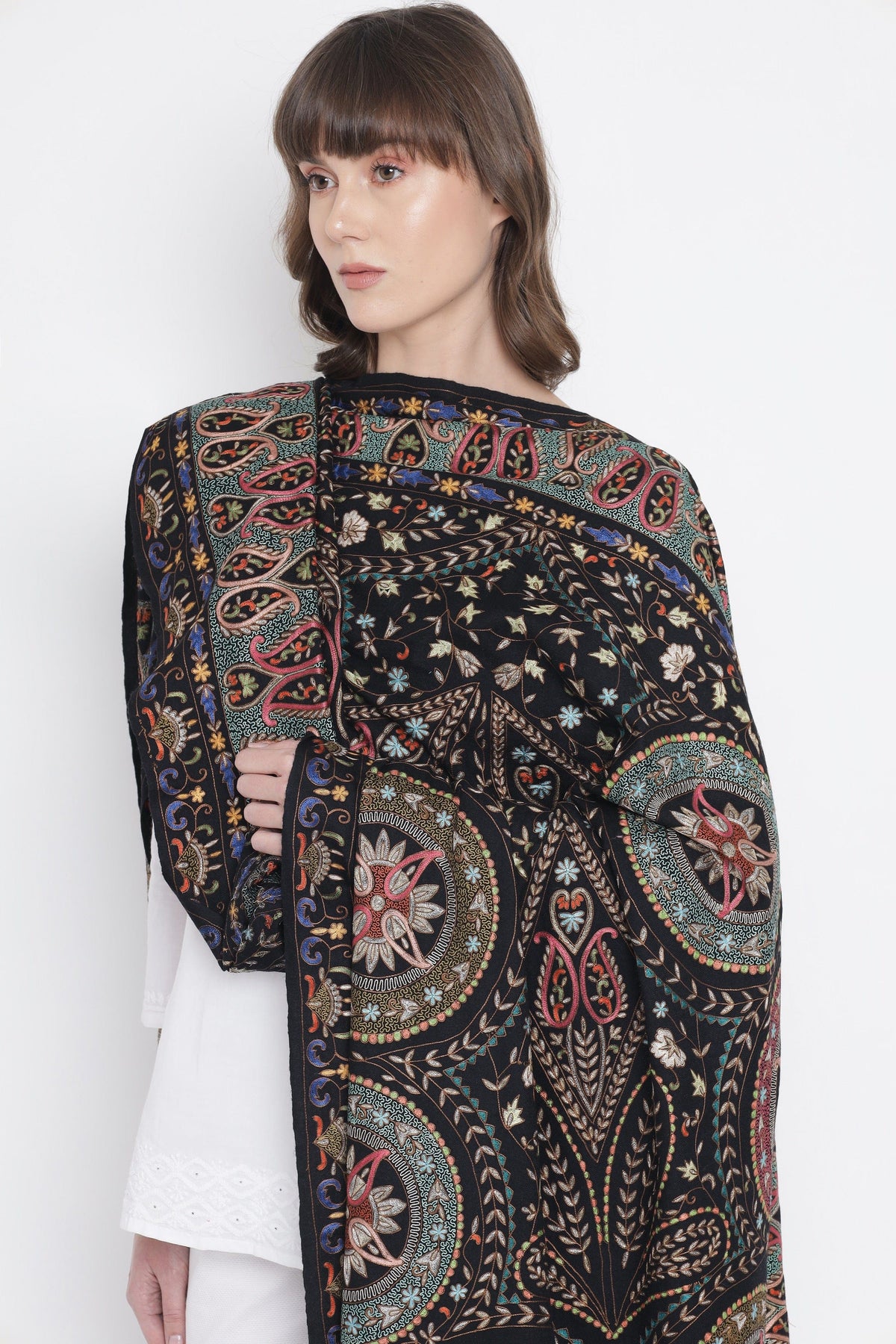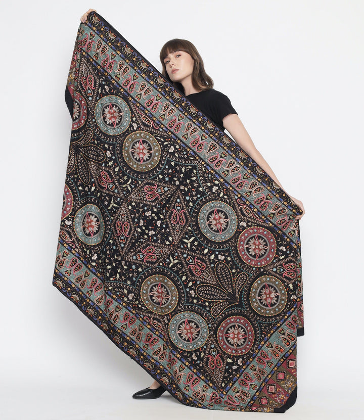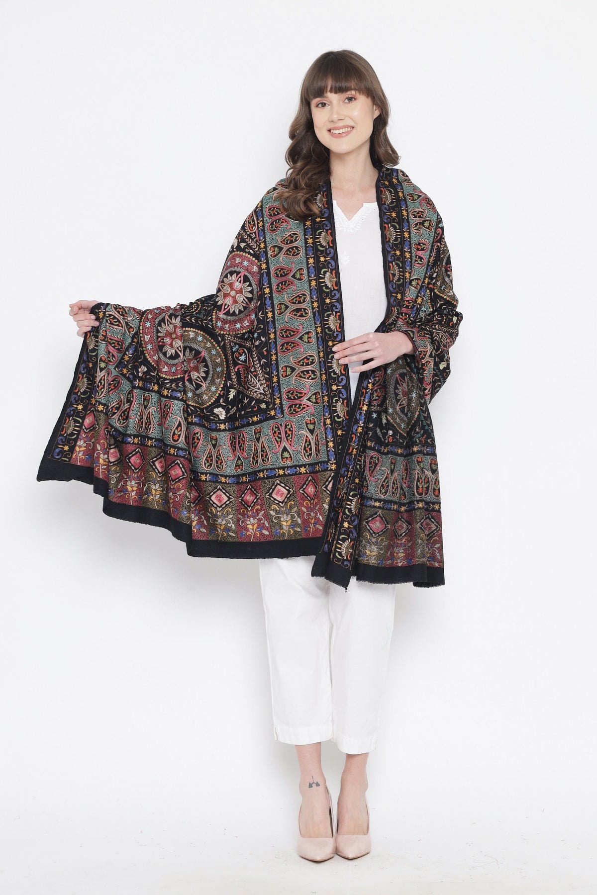 Pashtush Women Pashmina Shawl, Charms of Paradise Aesthetic, Black