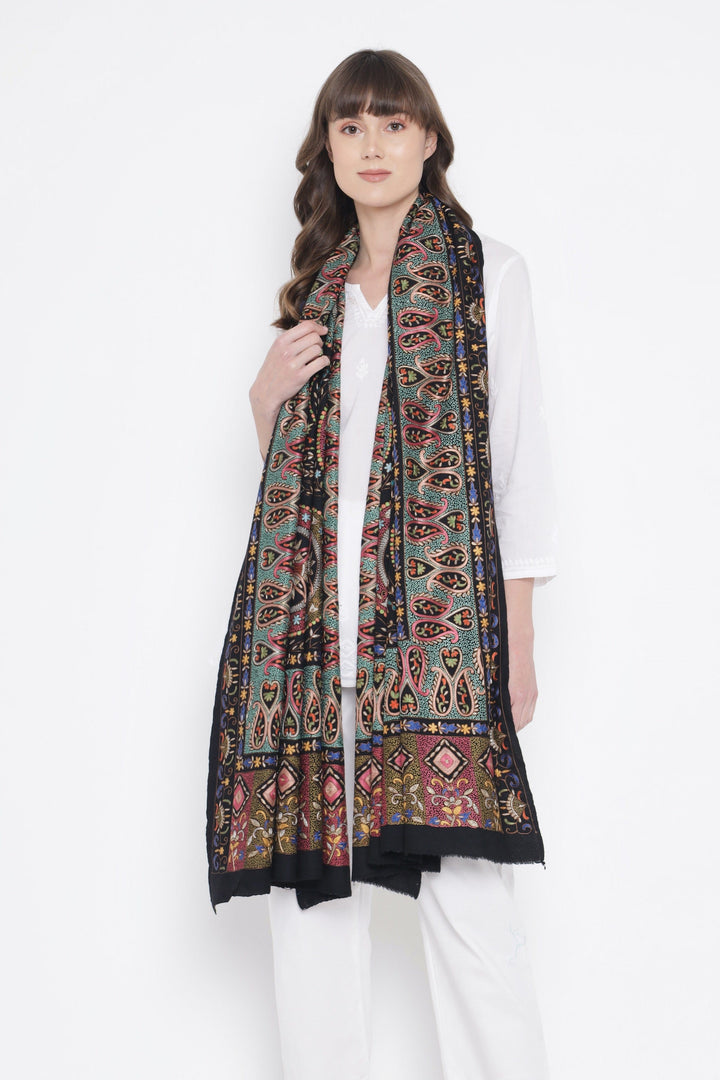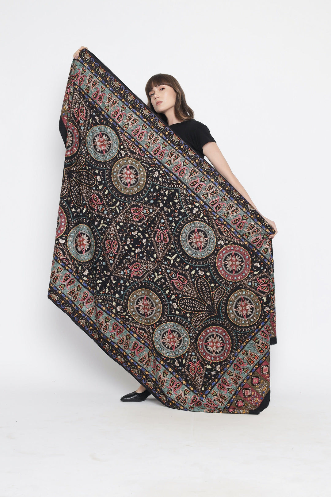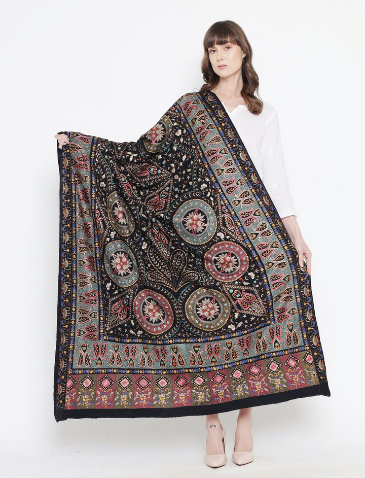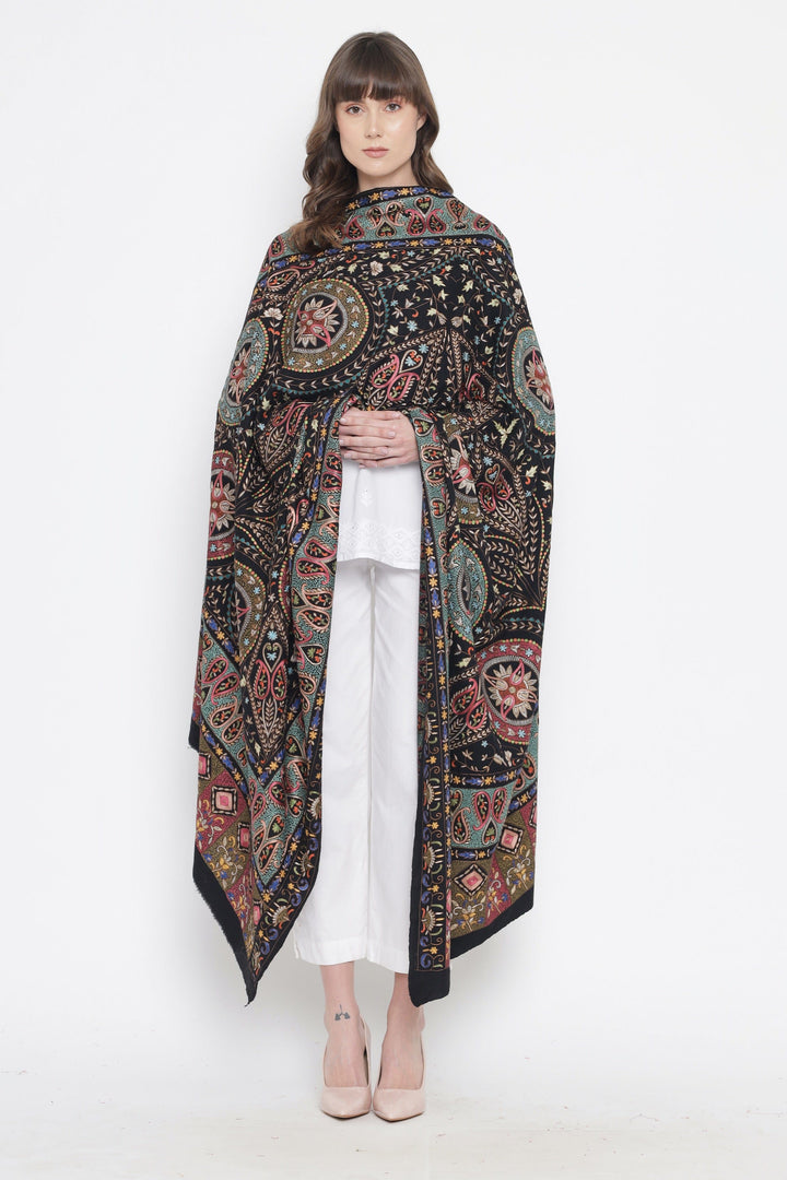 Pashtush Women Pashmina Shawl, Charms of Paradise Aesthetic, Black