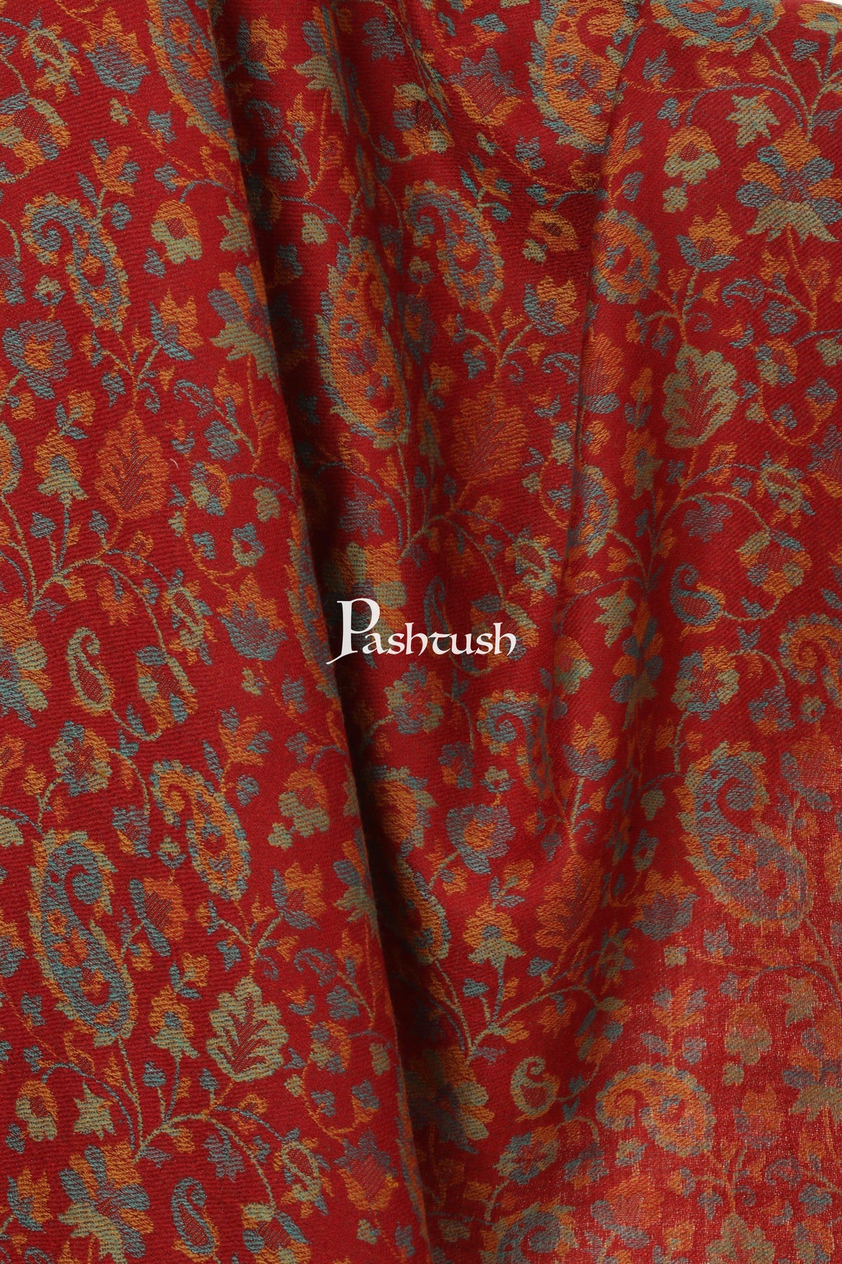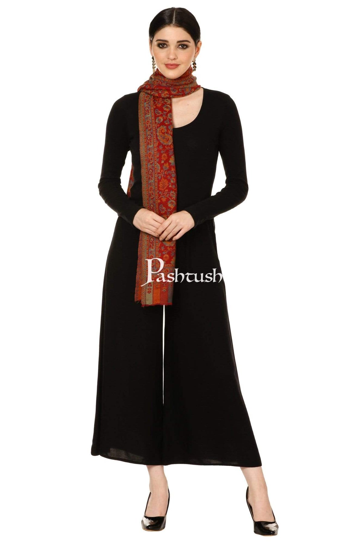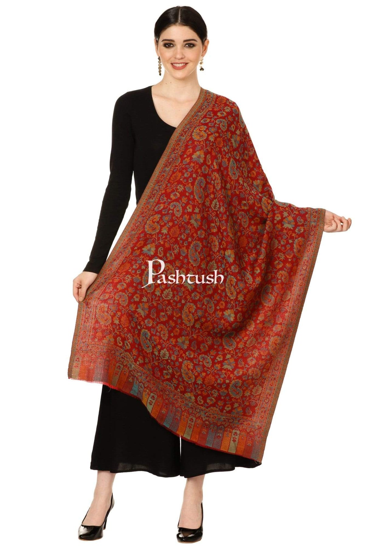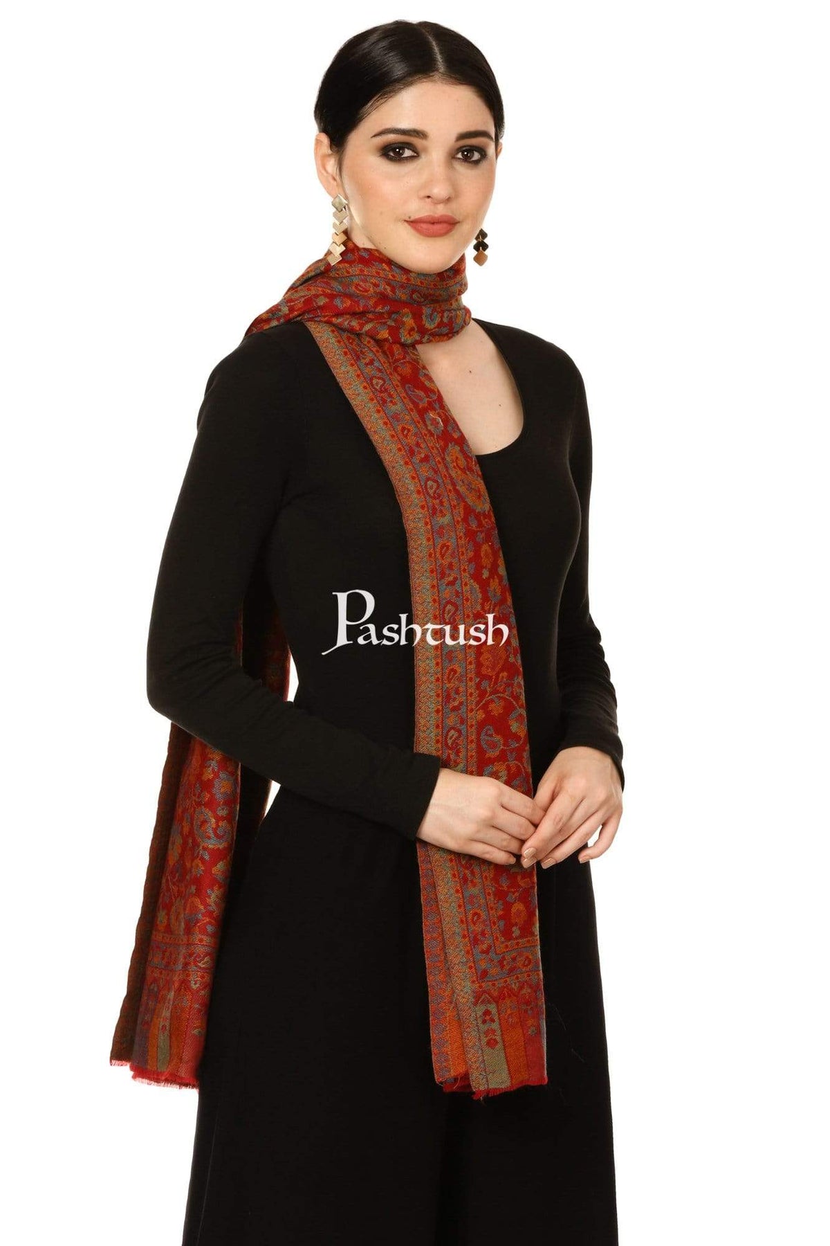 Pashtush Women'S Soft Wool, Reversible Stole, Scarf, Ethnic Weave, Deep Maroon