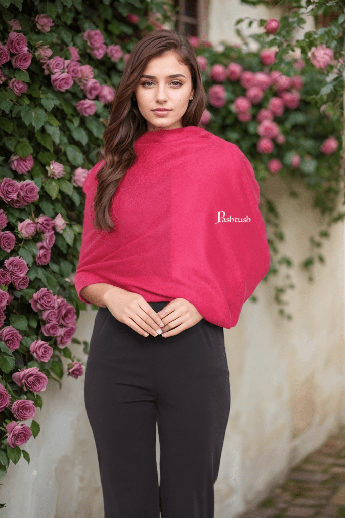 Pashtush Womens Self Stole, Fine Wool, Paisley Weave, Neo Pink