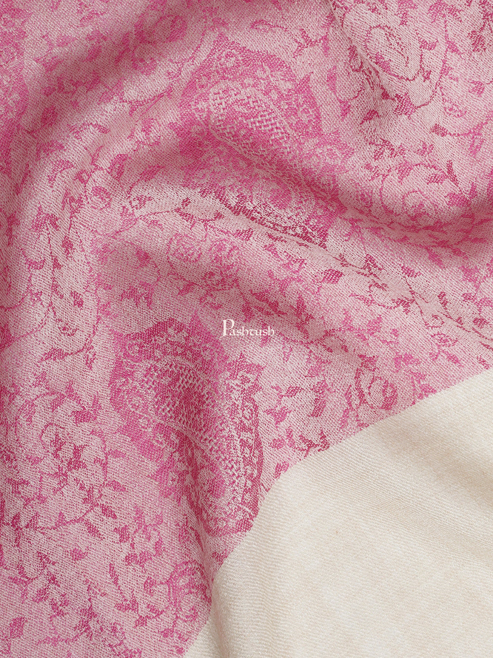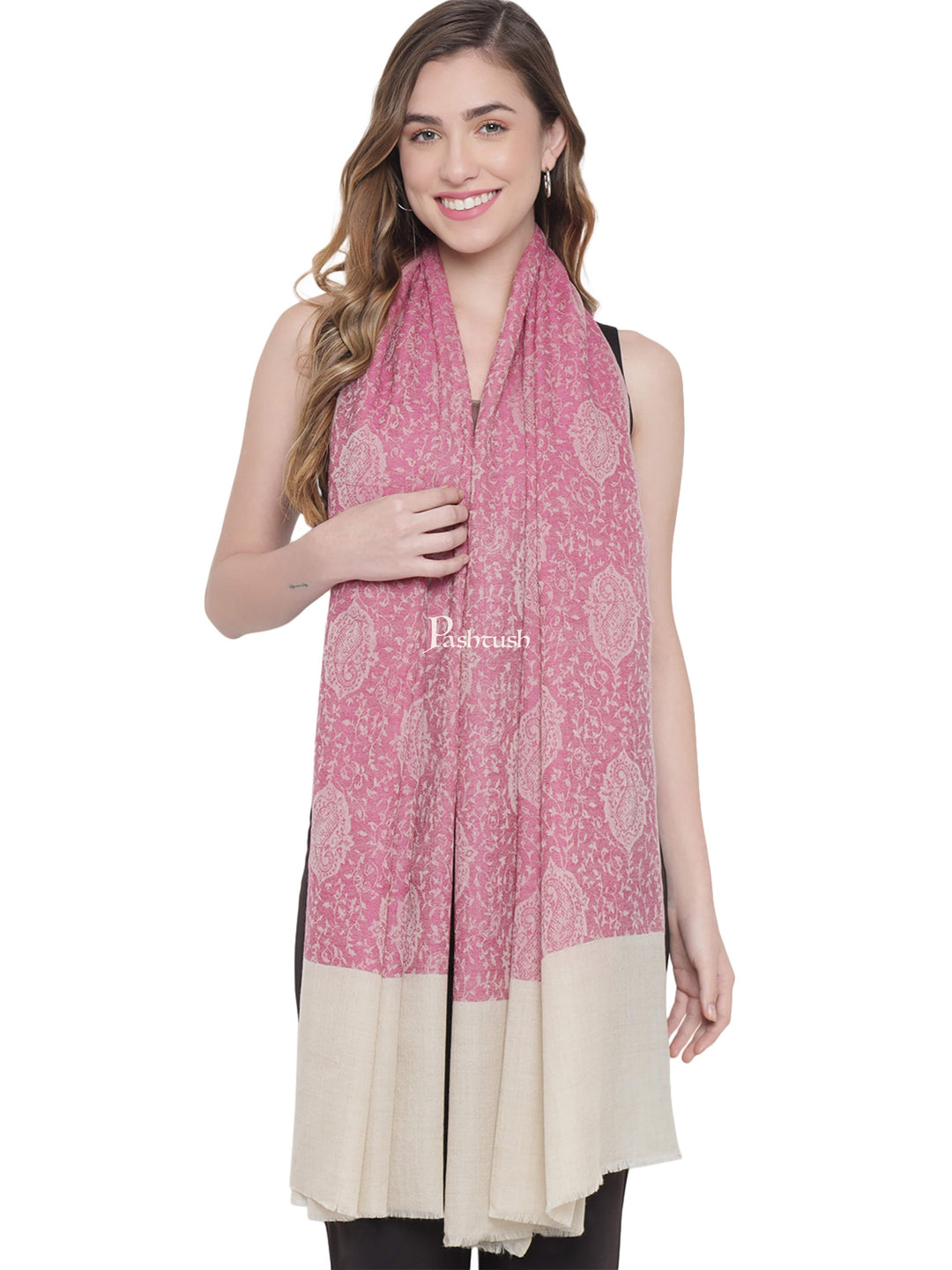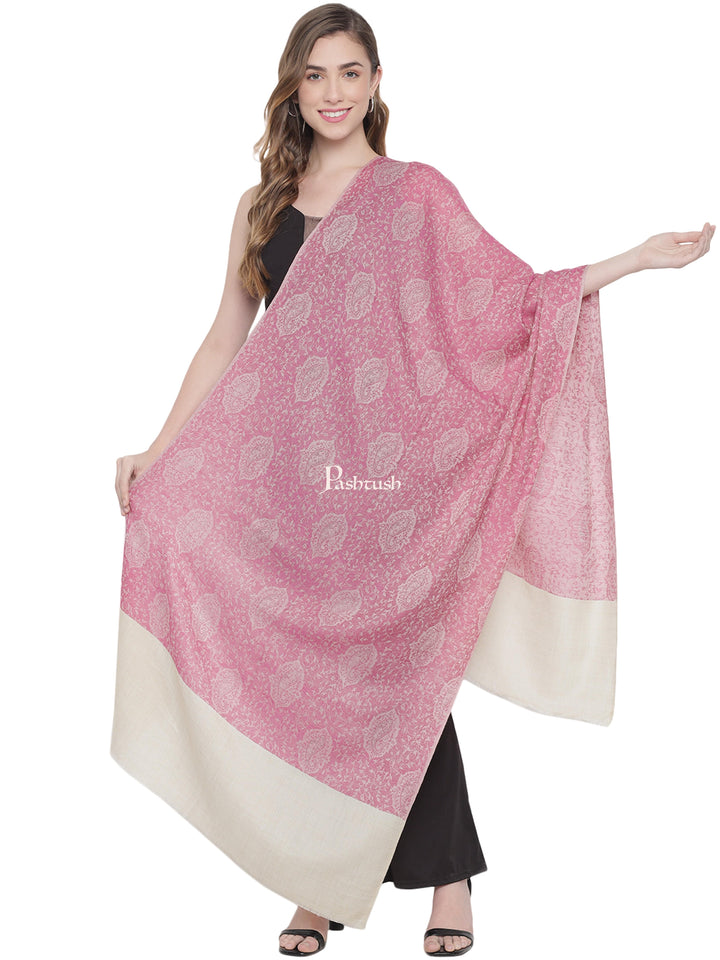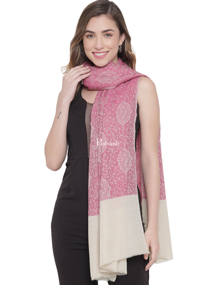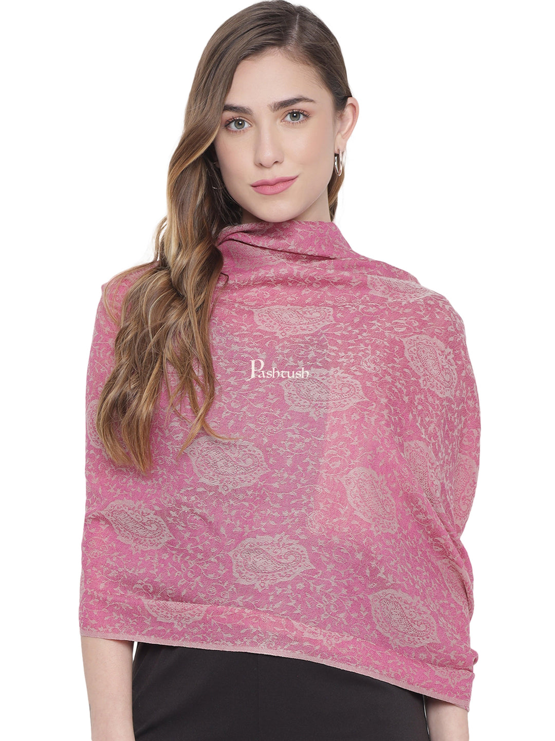 Pashtush Womens Self Stole, Fine Wool, Paisley Weave, Pink