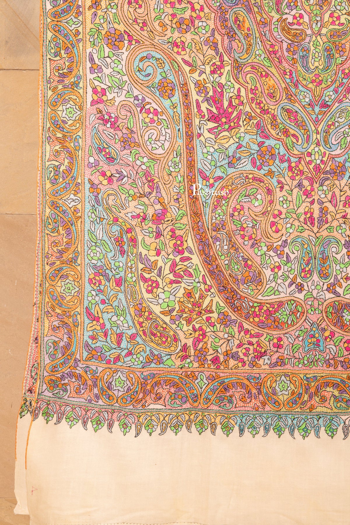 Pashtush Pure Pashmina Shawl for Women, Hand Embroidery Hand Woven, Gulaabdar, Ivory