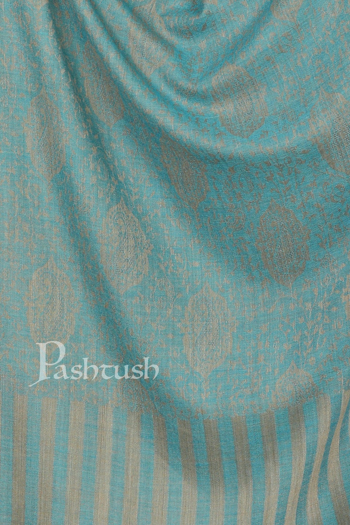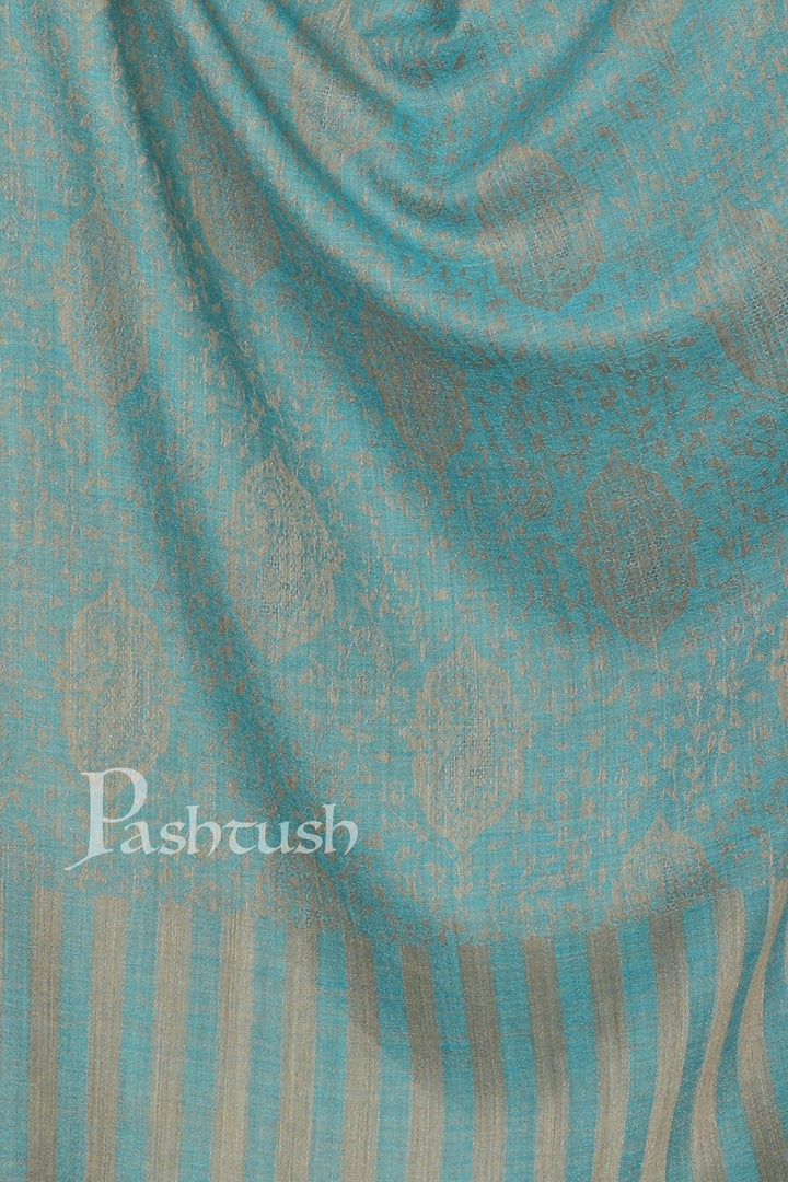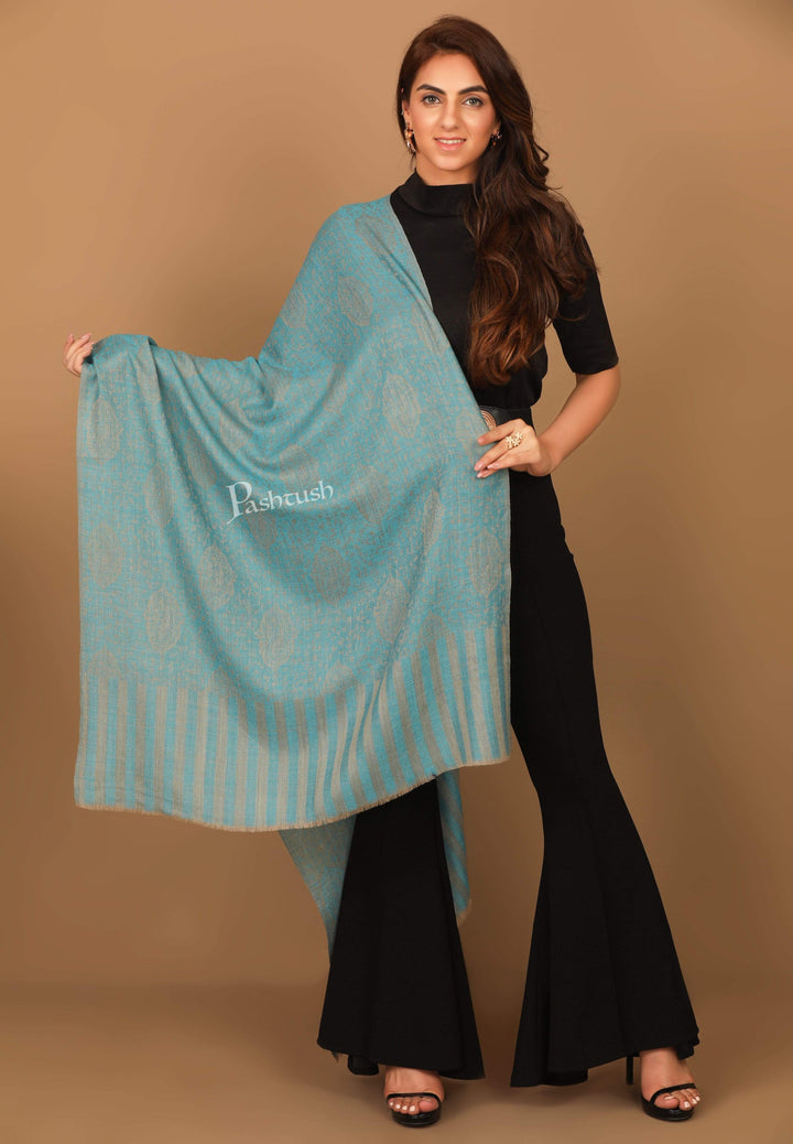 Pashtush Women'S Soft Wool, Reversible Stole Scarf, Paisley Weave, Arabic Sea Blue