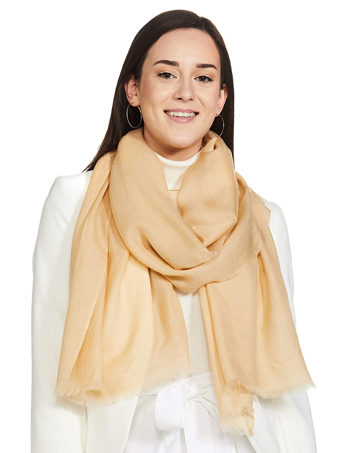 Pashtush Womens Softest Cashmere Scarf, Diamond Weave, Beige