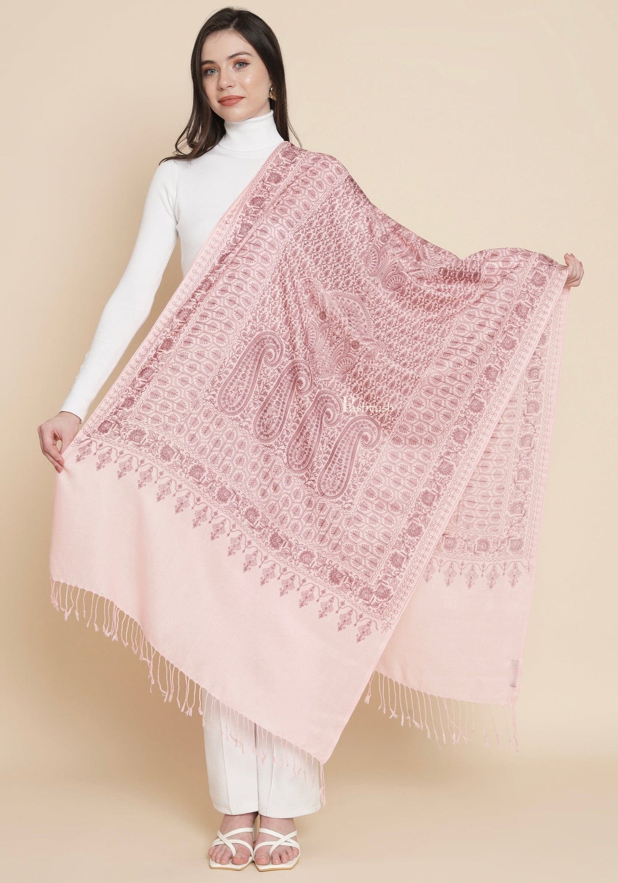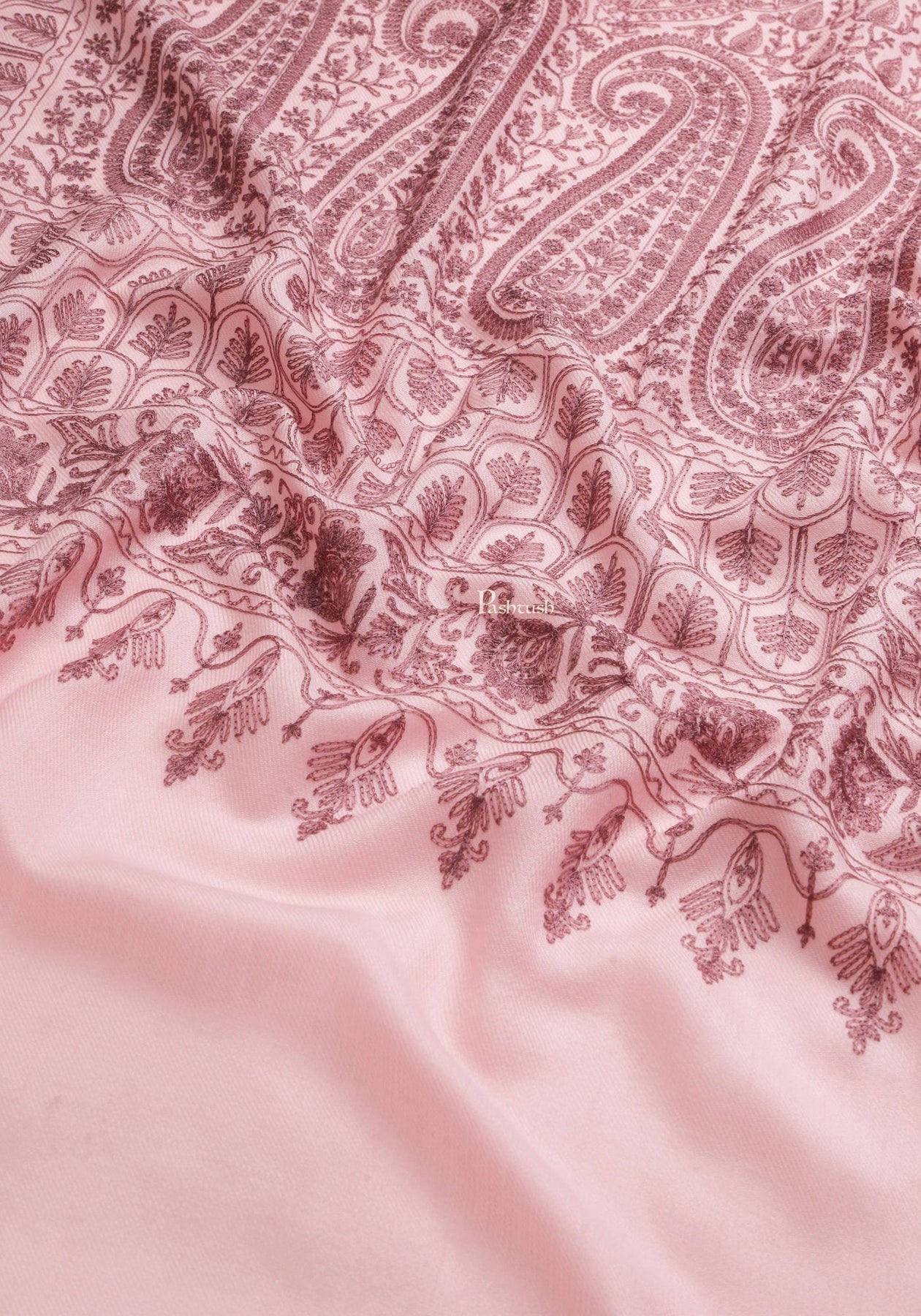 Pashtush Womens Womens, Fine Wool, Paisley Silky Nalki Embroidery, Light Pink