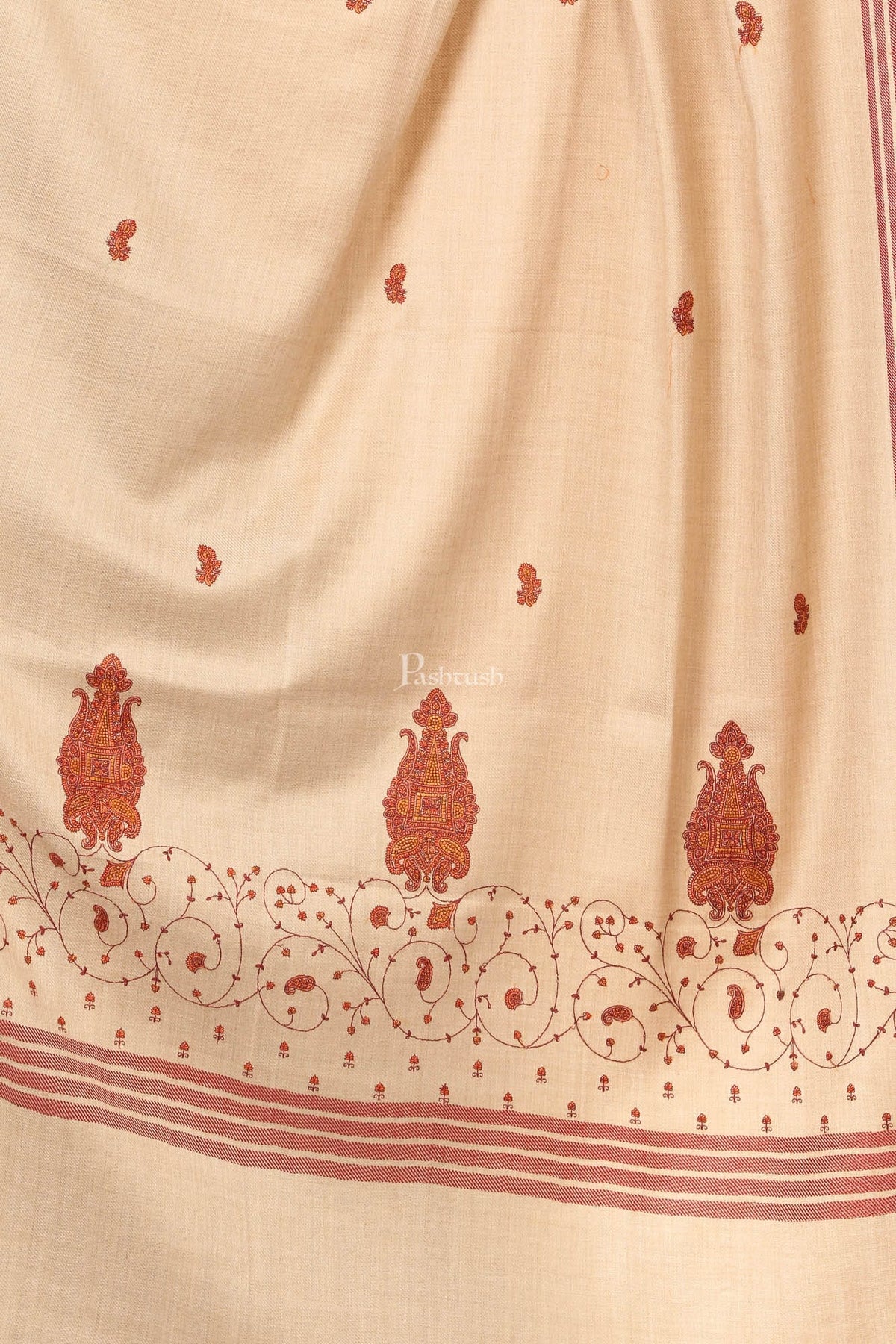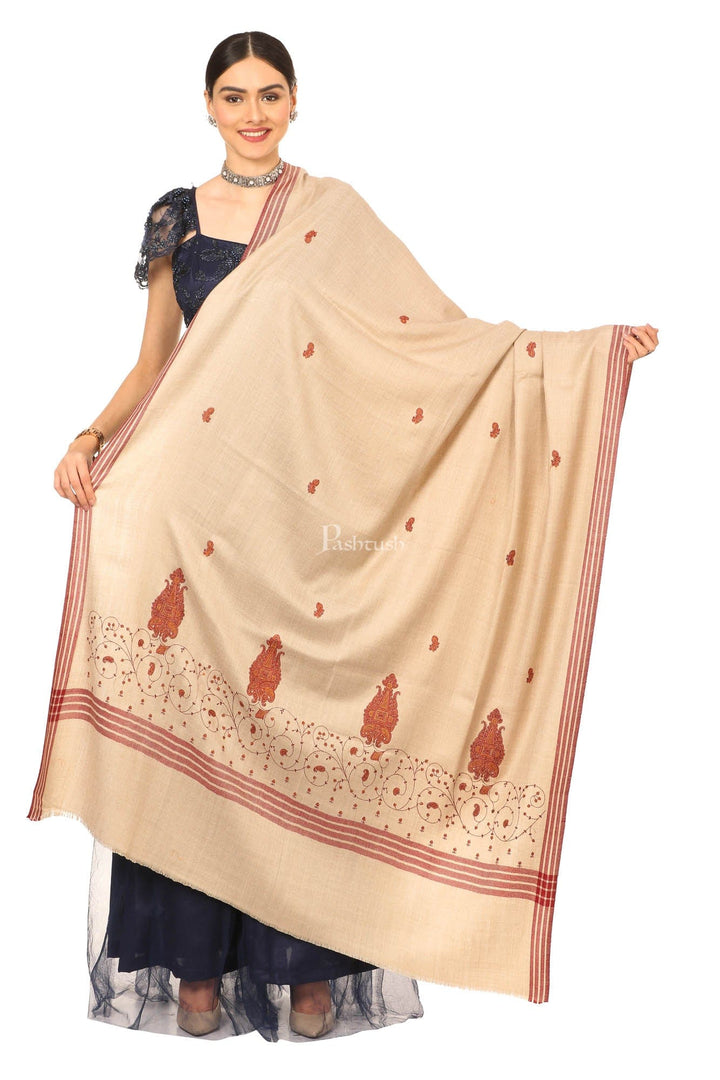 Pashtush Women'S Wool Shawl With Hand Embroidery (Taupe , Free Size)