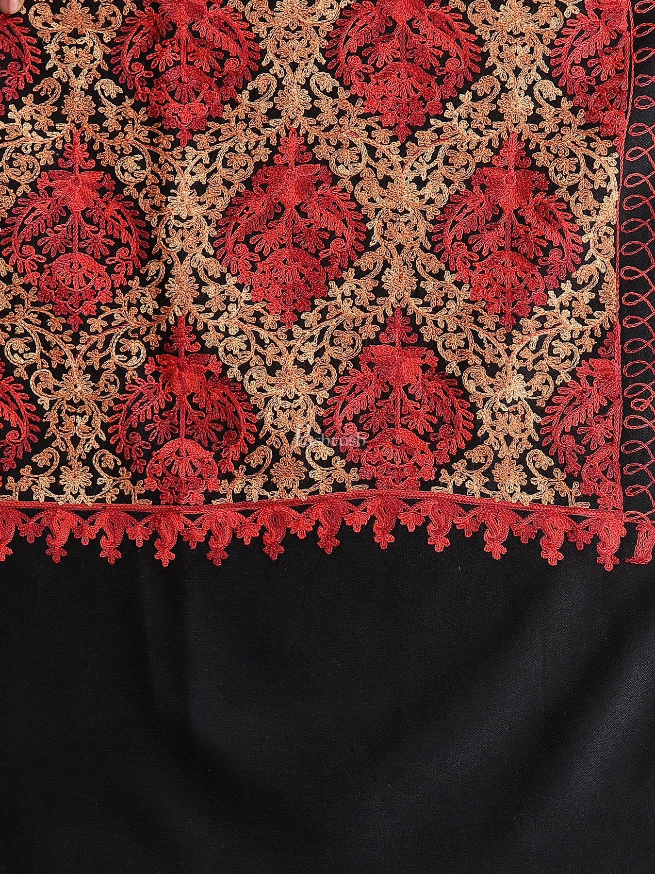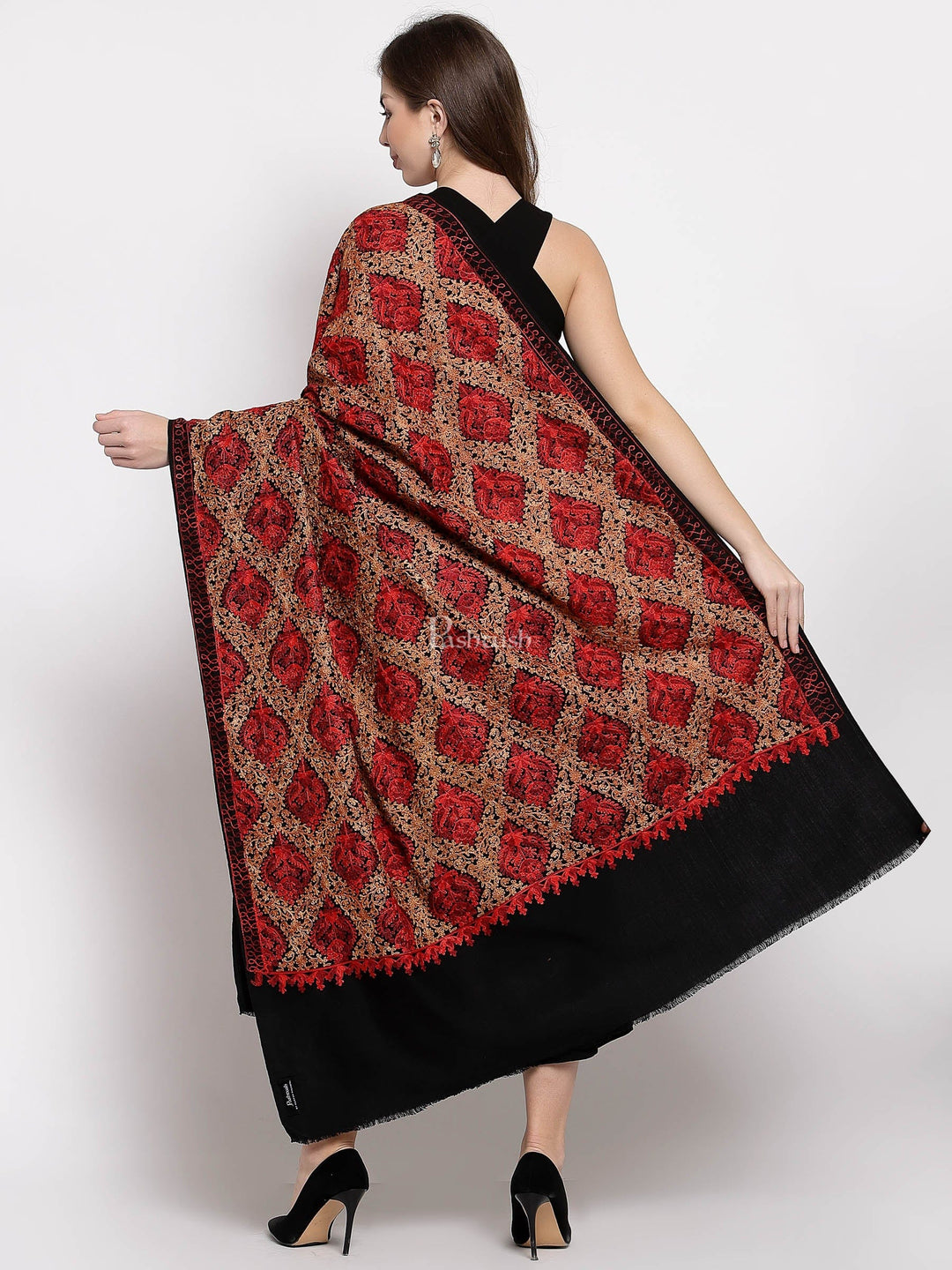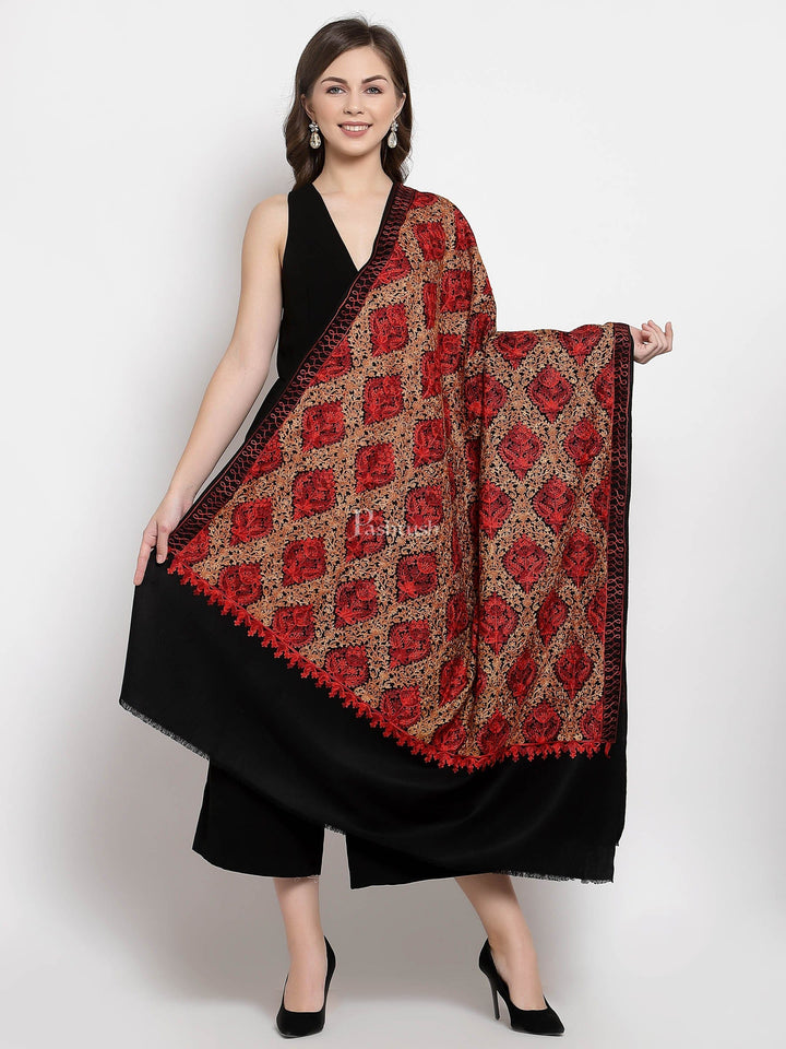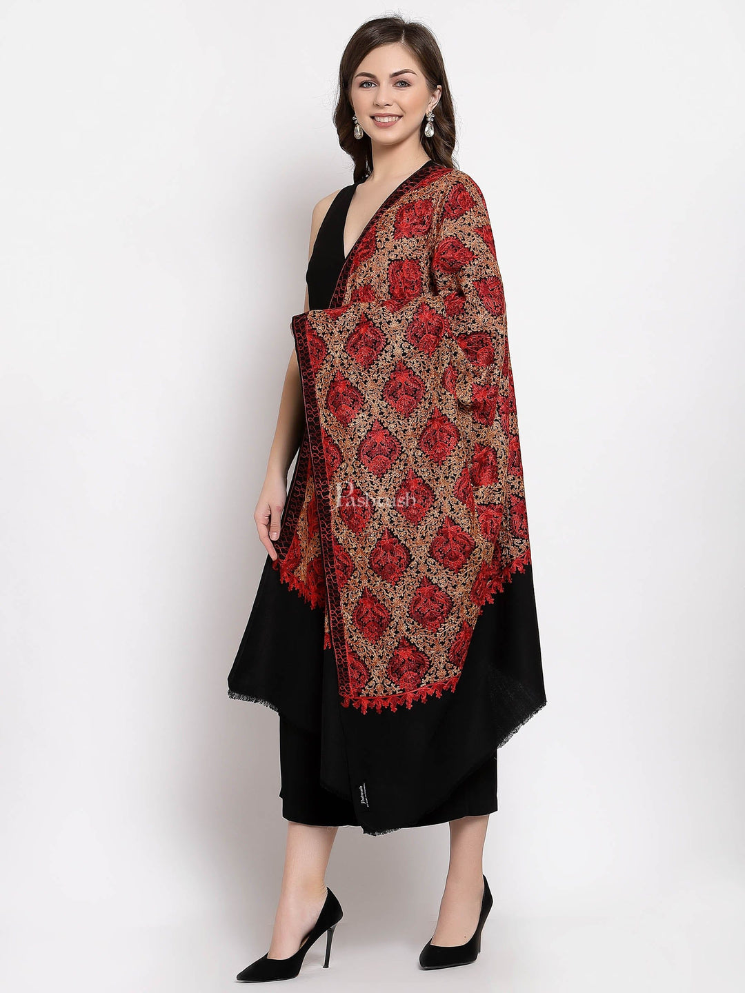 Pashtush Womens Woollen, Silky Aari Embroidery Needlework Stole, Black