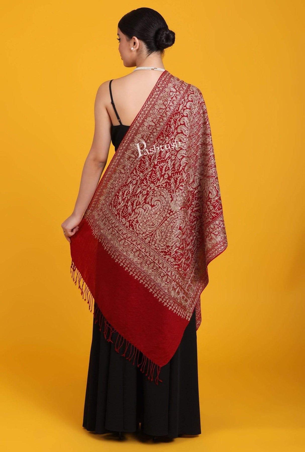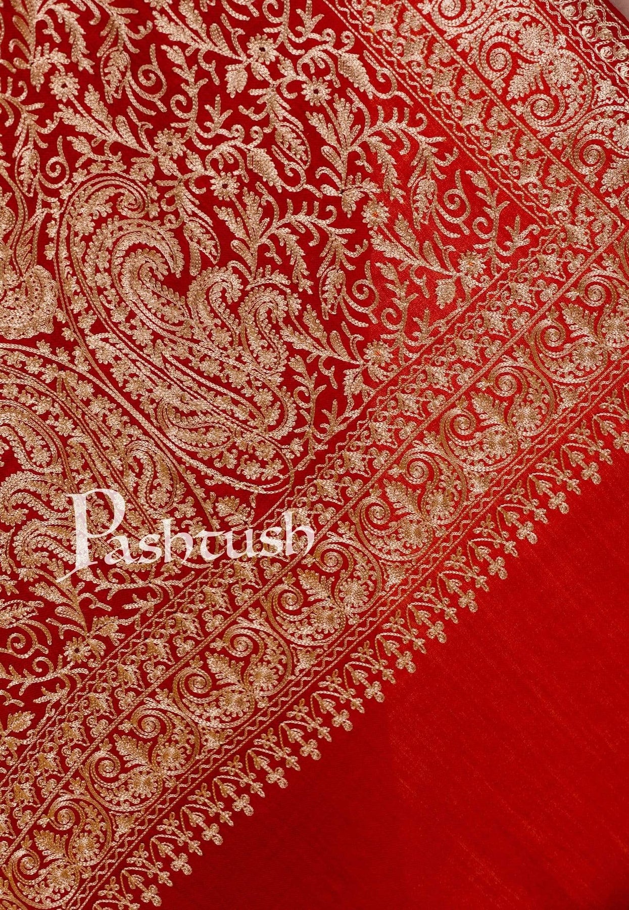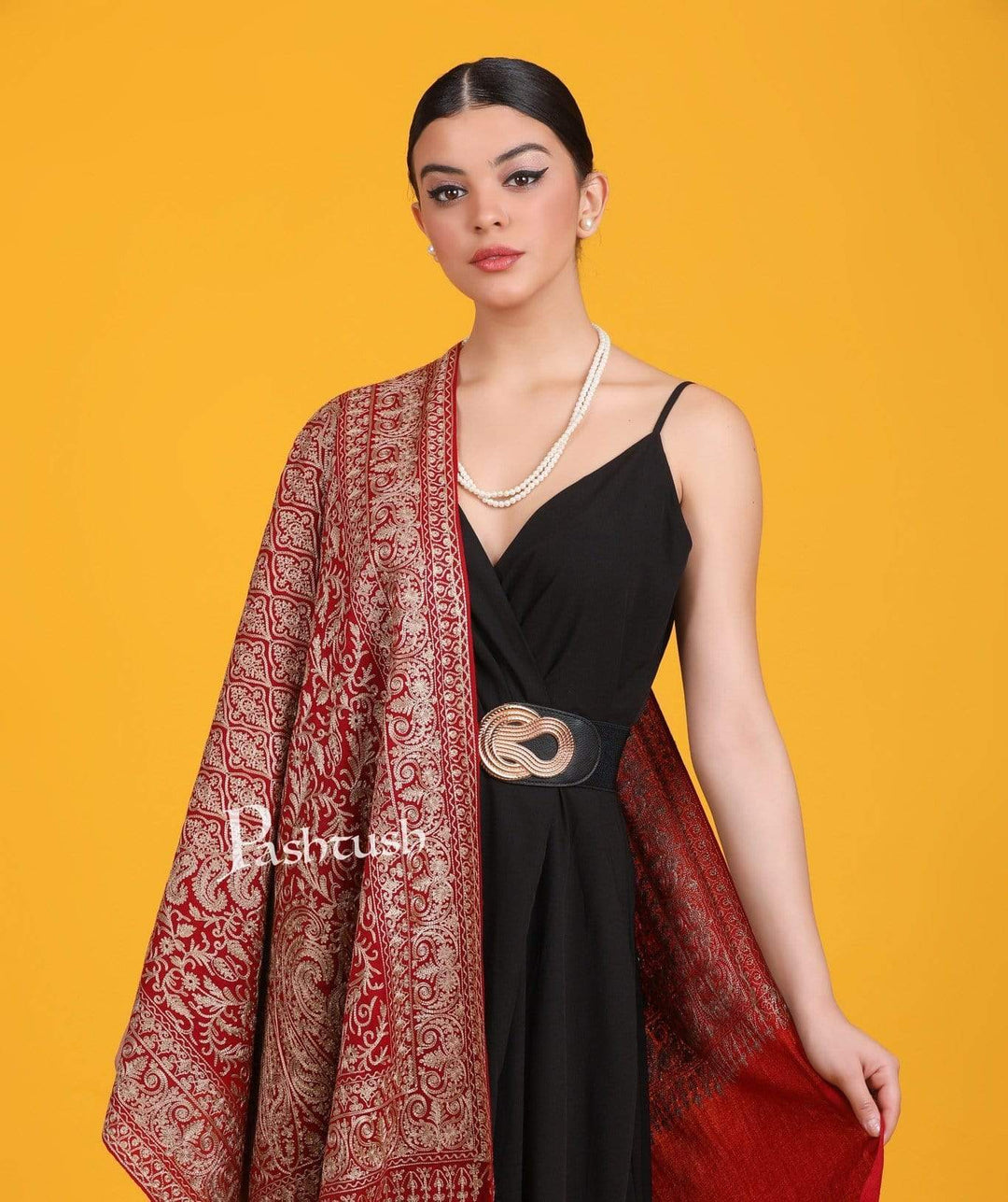 Pashtush Womens Woollen Stole, Silky Nalki Embroidery Needlework Stole, Maroon