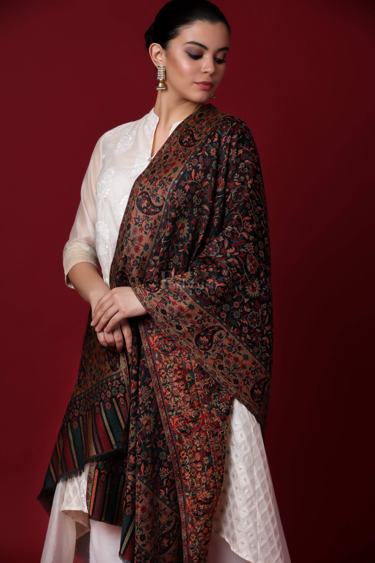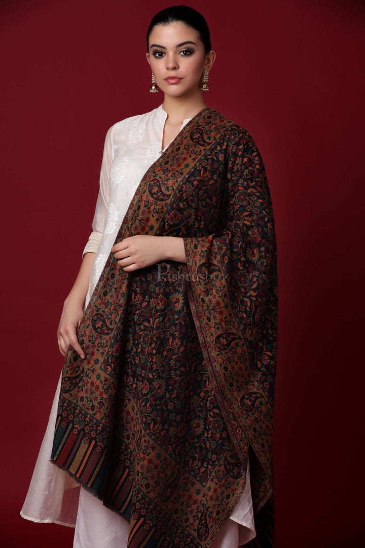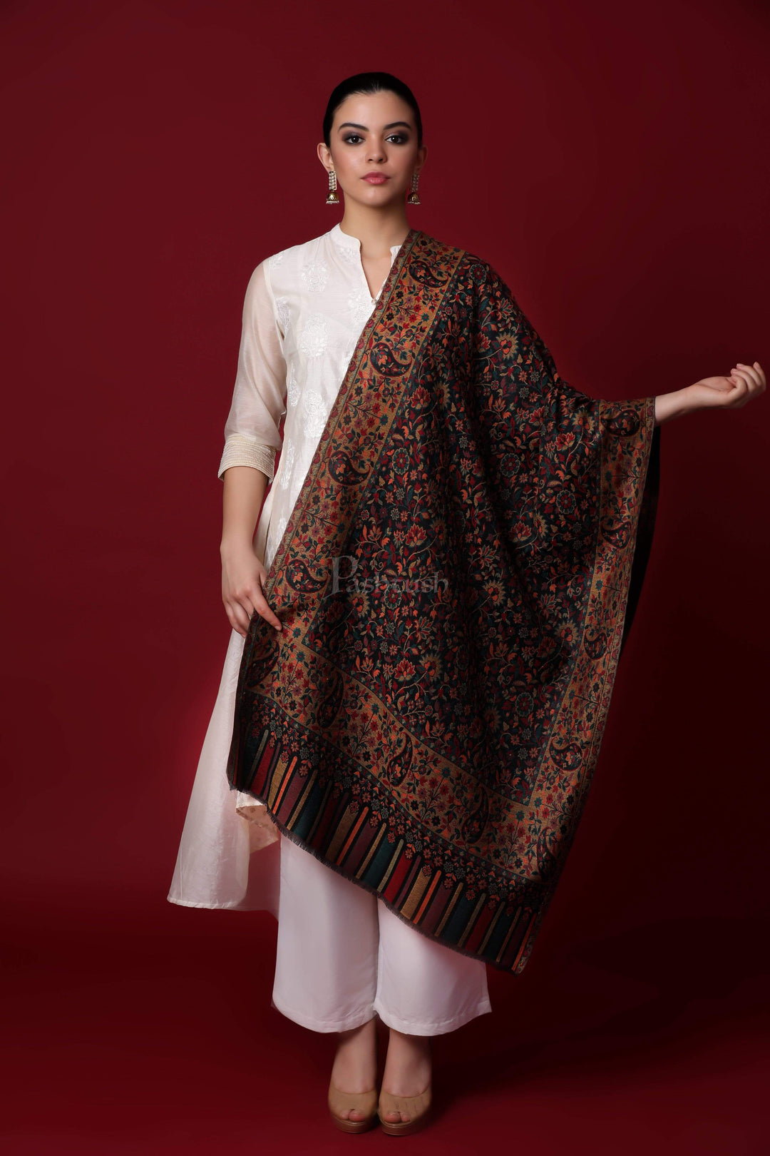 Pashtush Womens Woven Ethnic Stole, Woollen, Faux Pashmina Stole Black