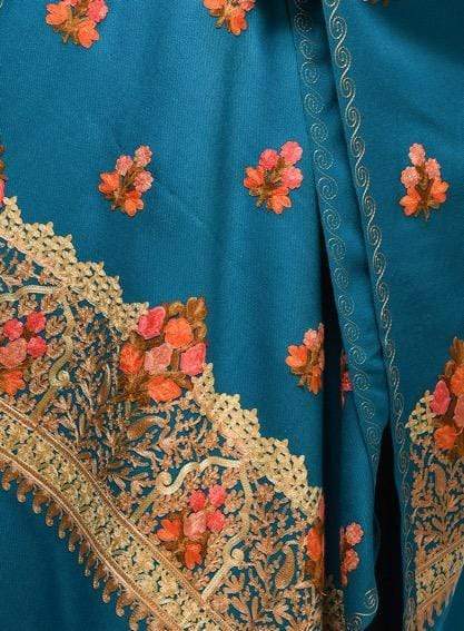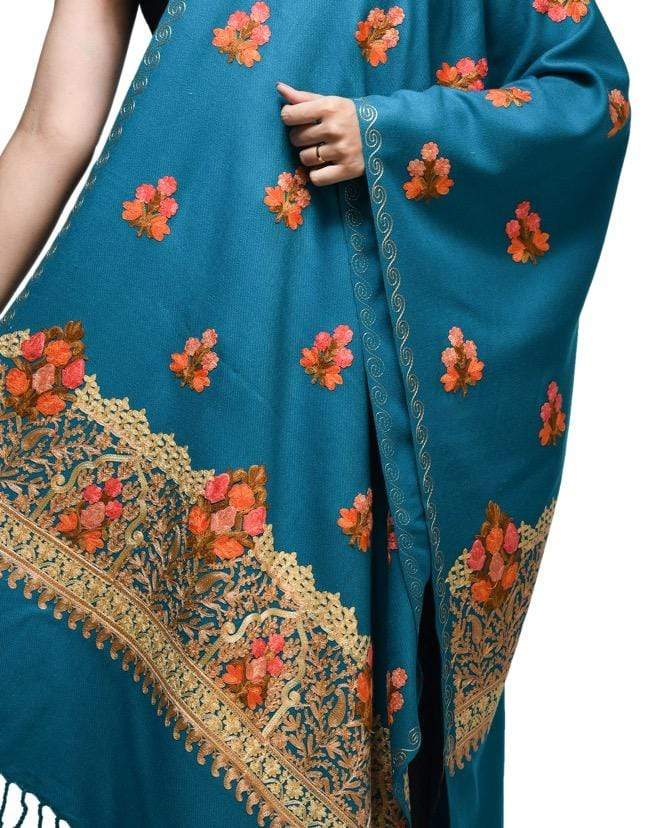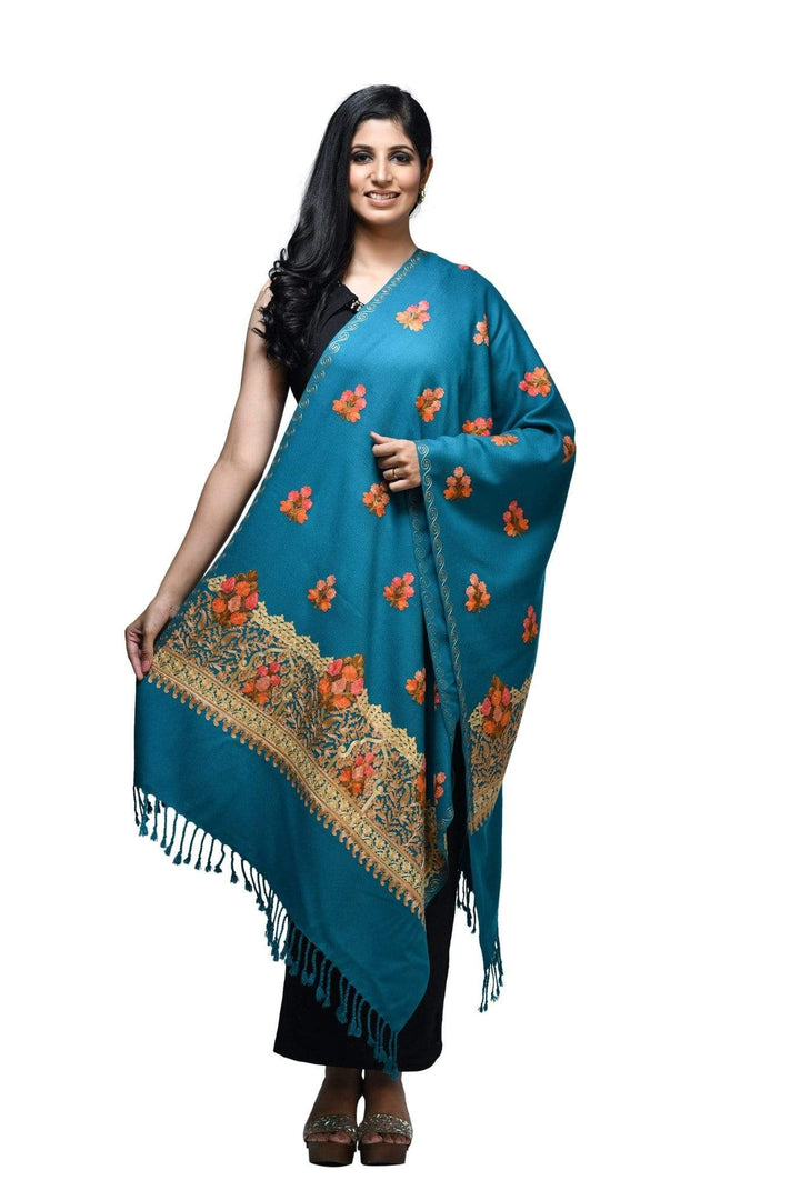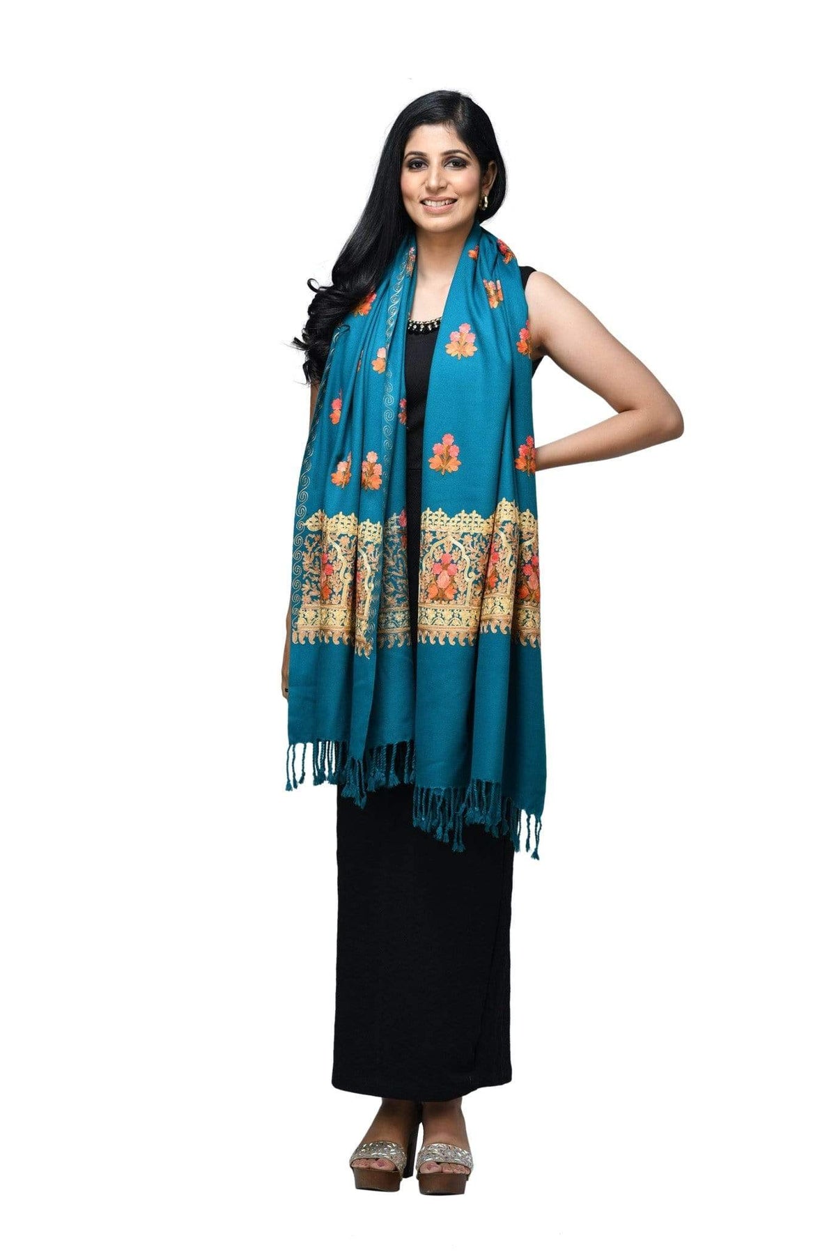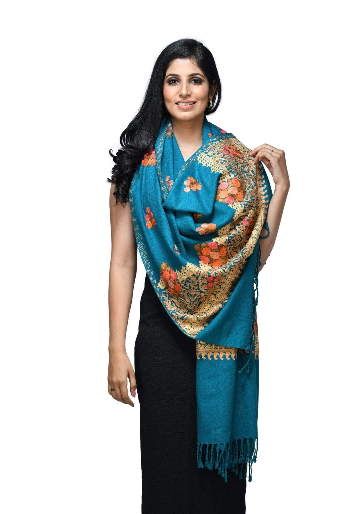 Pashwool Womens Kashmiri Embroidery Stole, Soft And Warm, Woollen Stole, Arabic Blue