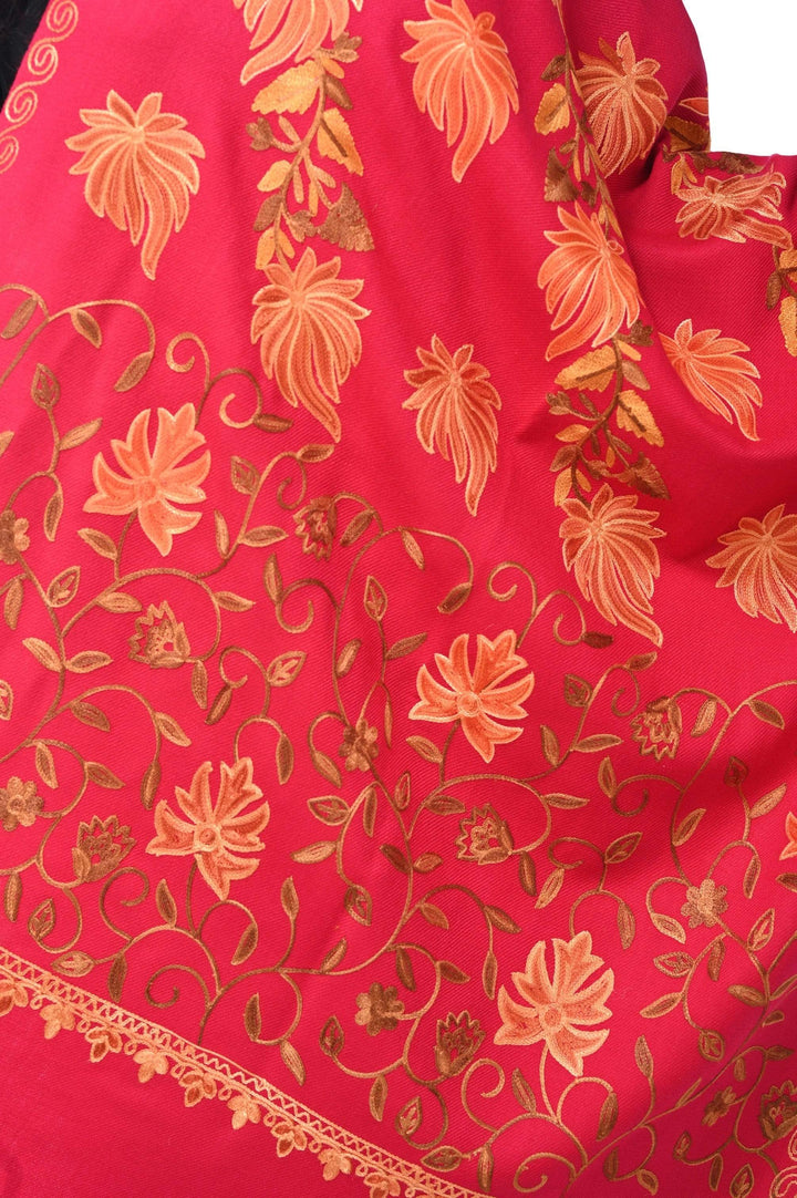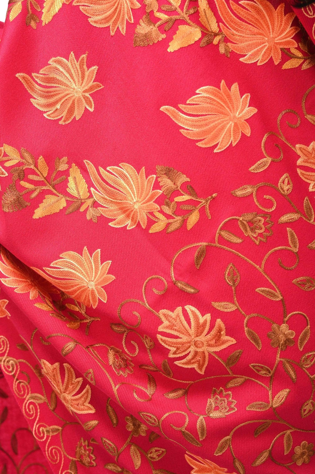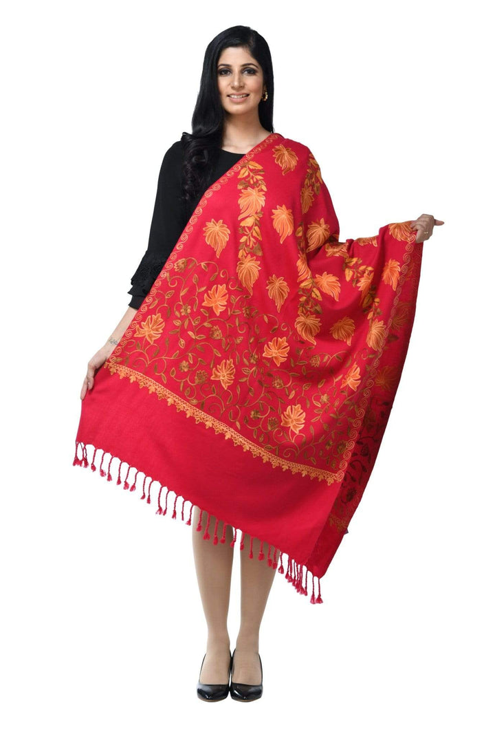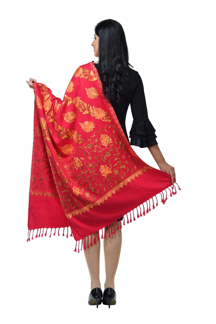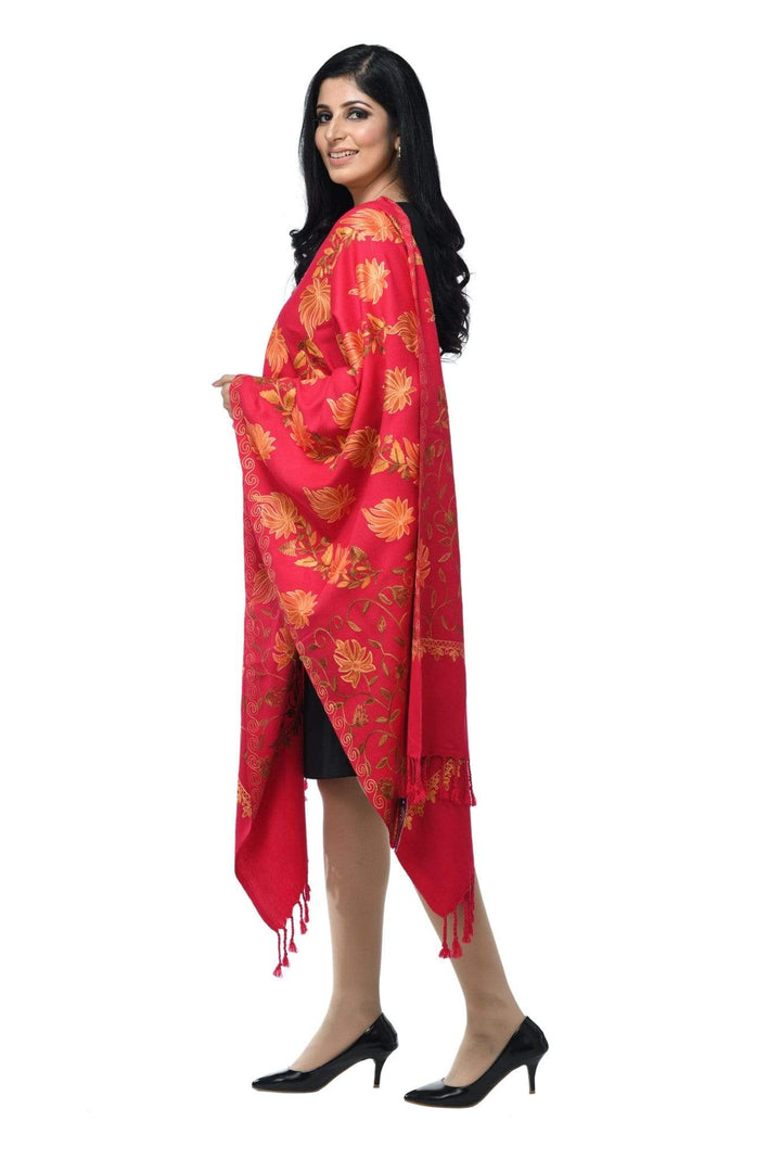 Pashwool Womens Kashmiri Embroidery Stole,Warm, Woollen Stole, Pink